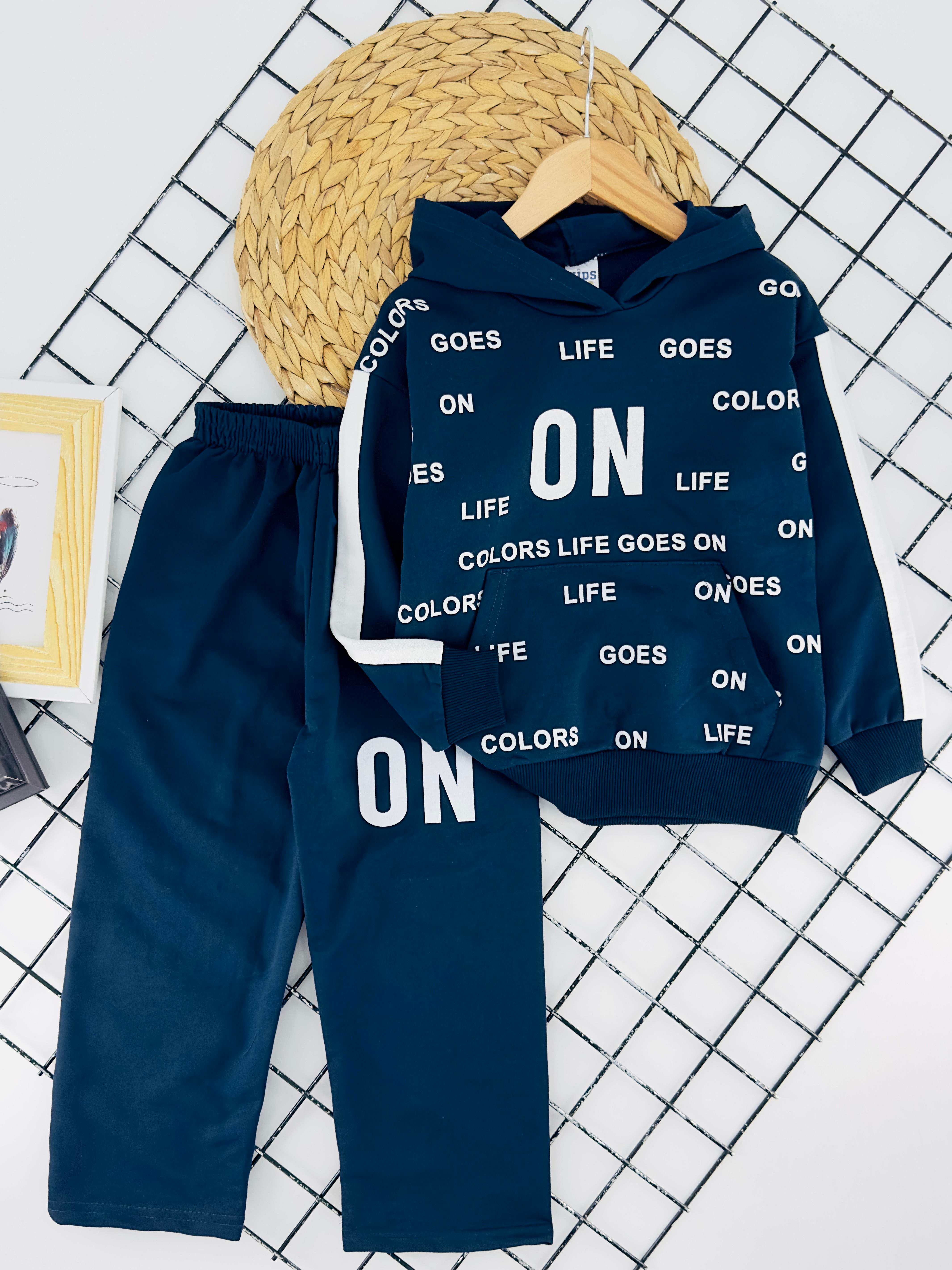 1068-1 On Lıfe Yazılı Baskılı Kız Çocuk Kapşonlu İki İplik Penye Takım-LACİVERT