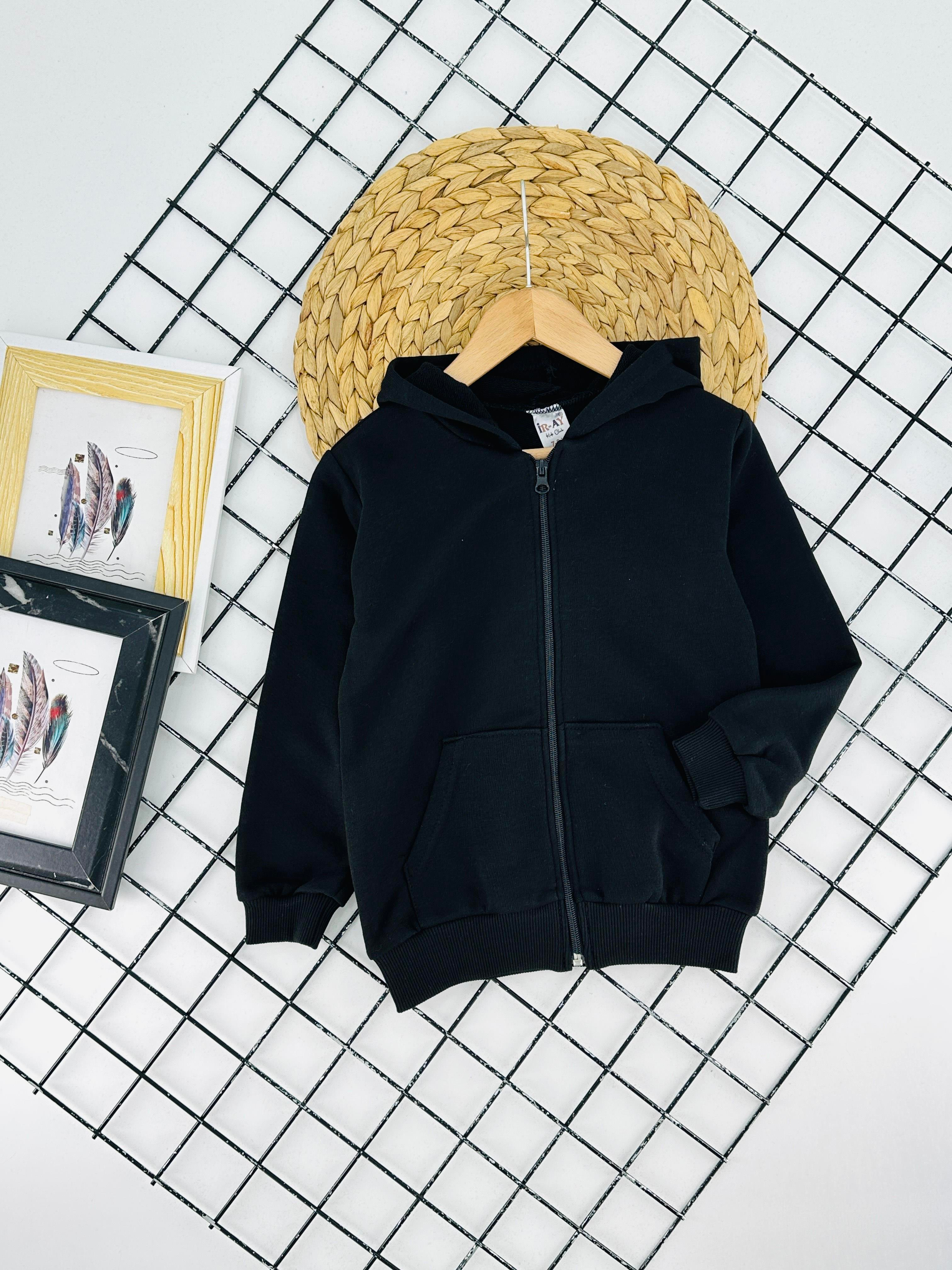 1110-4 Kapşonlu Üç İplik Şardonlu Erkek Çocuk Penye Hırka-SİYAH