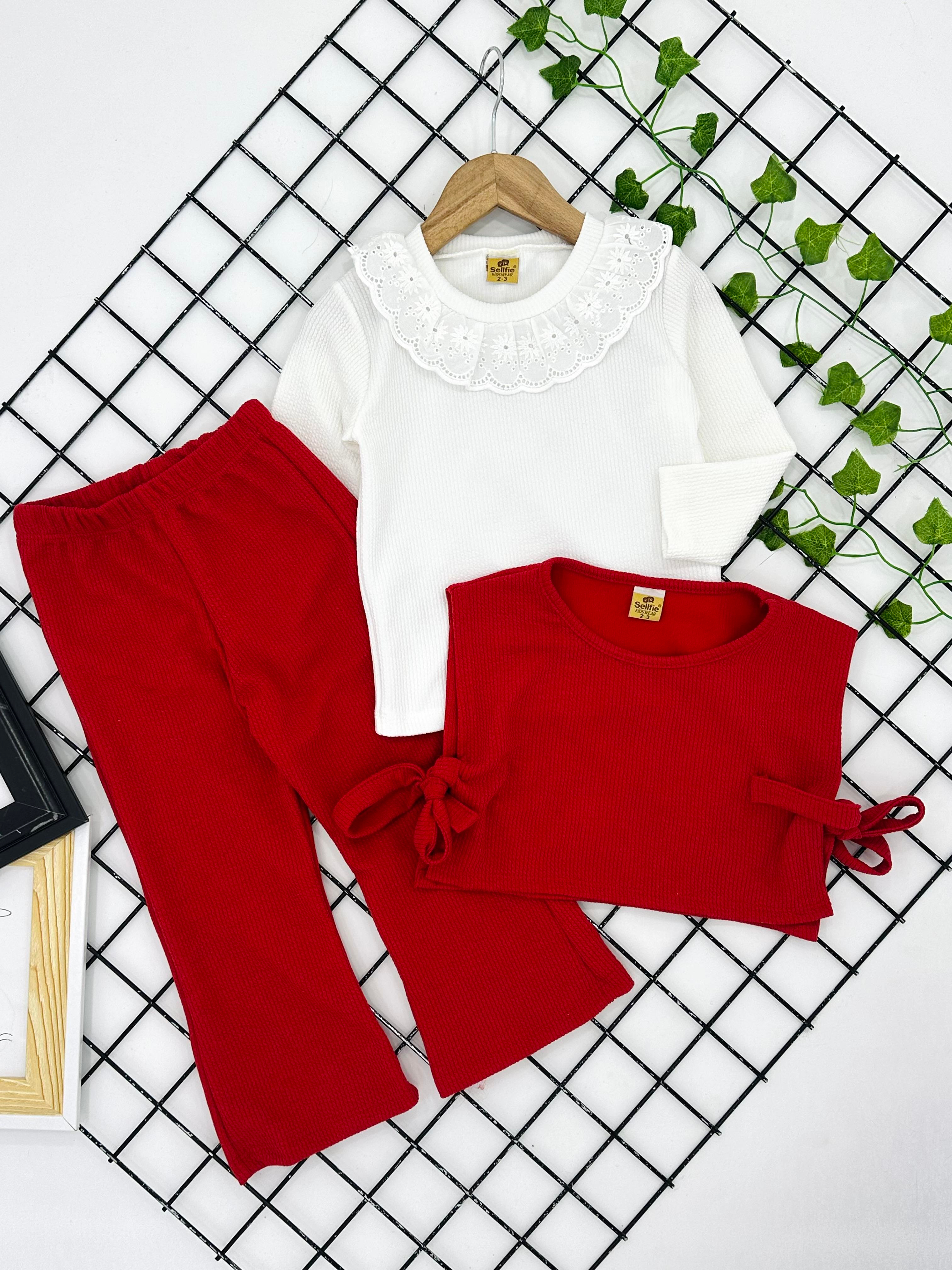 12501 Bürümcük Kumaş İçi Badili Kız Çocuk Üçlü Takım-KIRMIZI