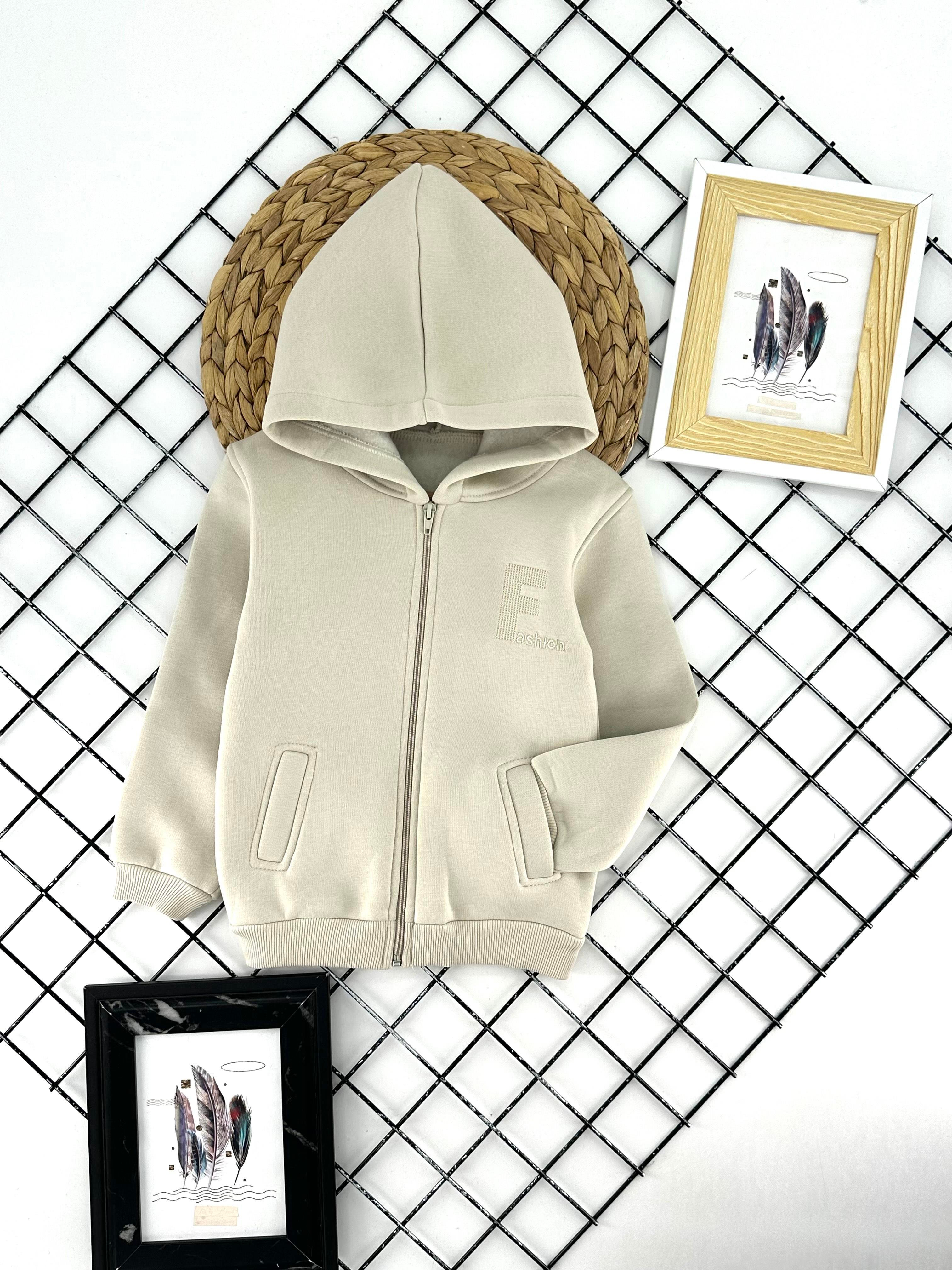 1348-1 F Nakışlı Üç İplik Unısex Hırka-BEJ