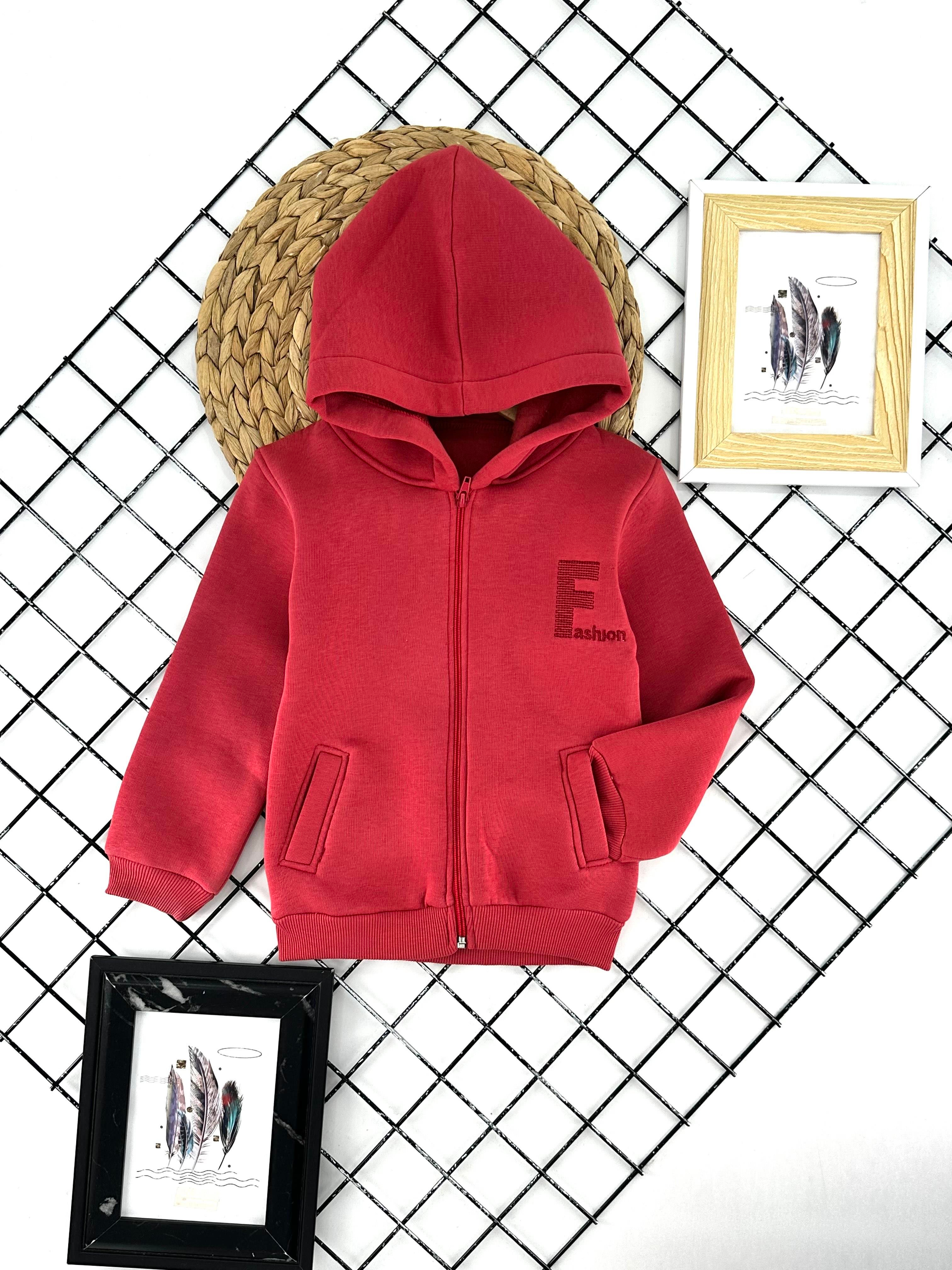 1348-1 F Nakışlı Üç İplik Unısex Hırka-KIRMIZI