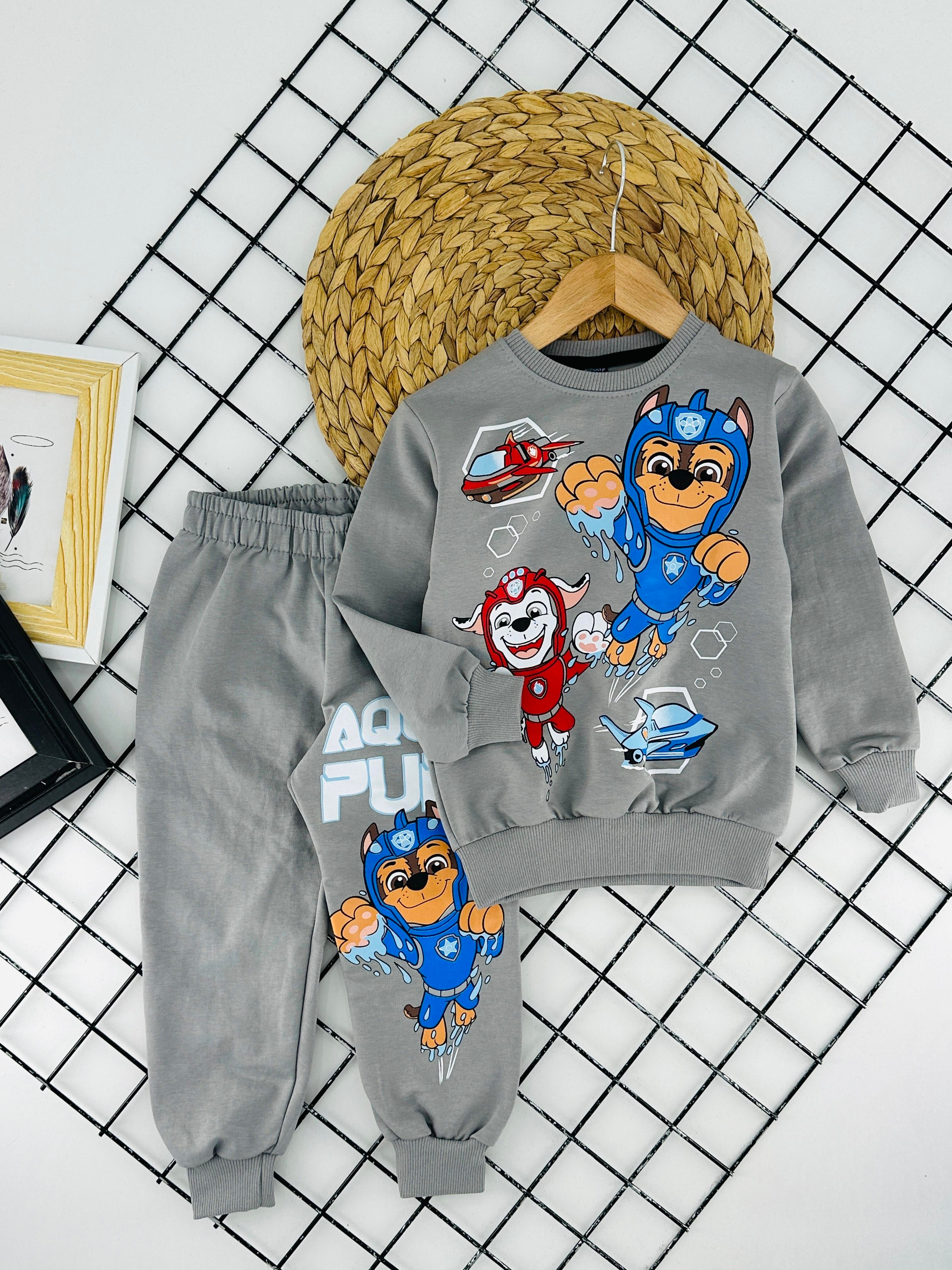 1409-4 Pw Ptrl Yazılı Baskılı Erkek Çocuk İki İplik Takım-GRİ