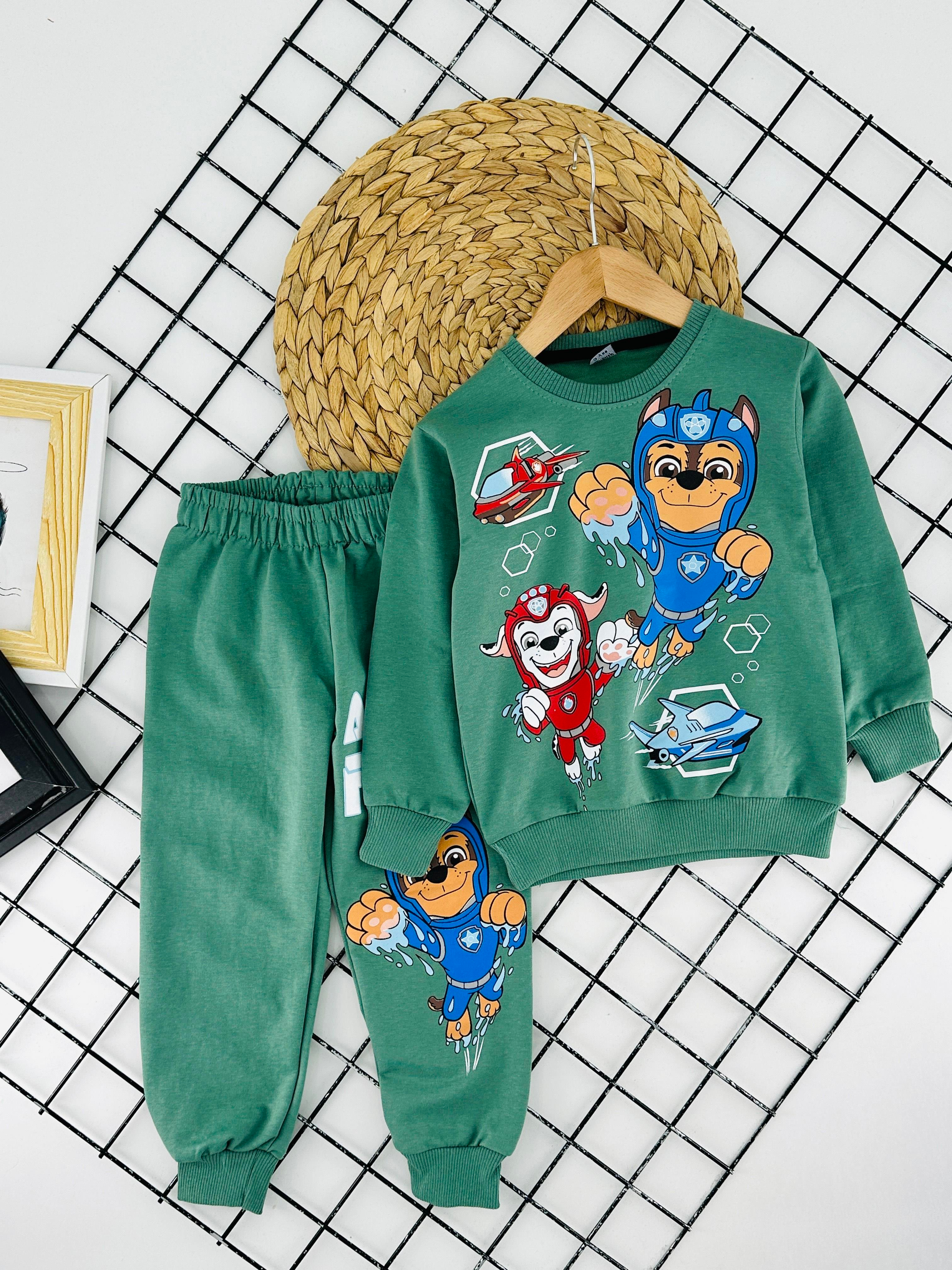 1409-4 Pw Ptrl Yazılı Baskılı Erkek Çocuk İki İplik Takım-YEŞİL