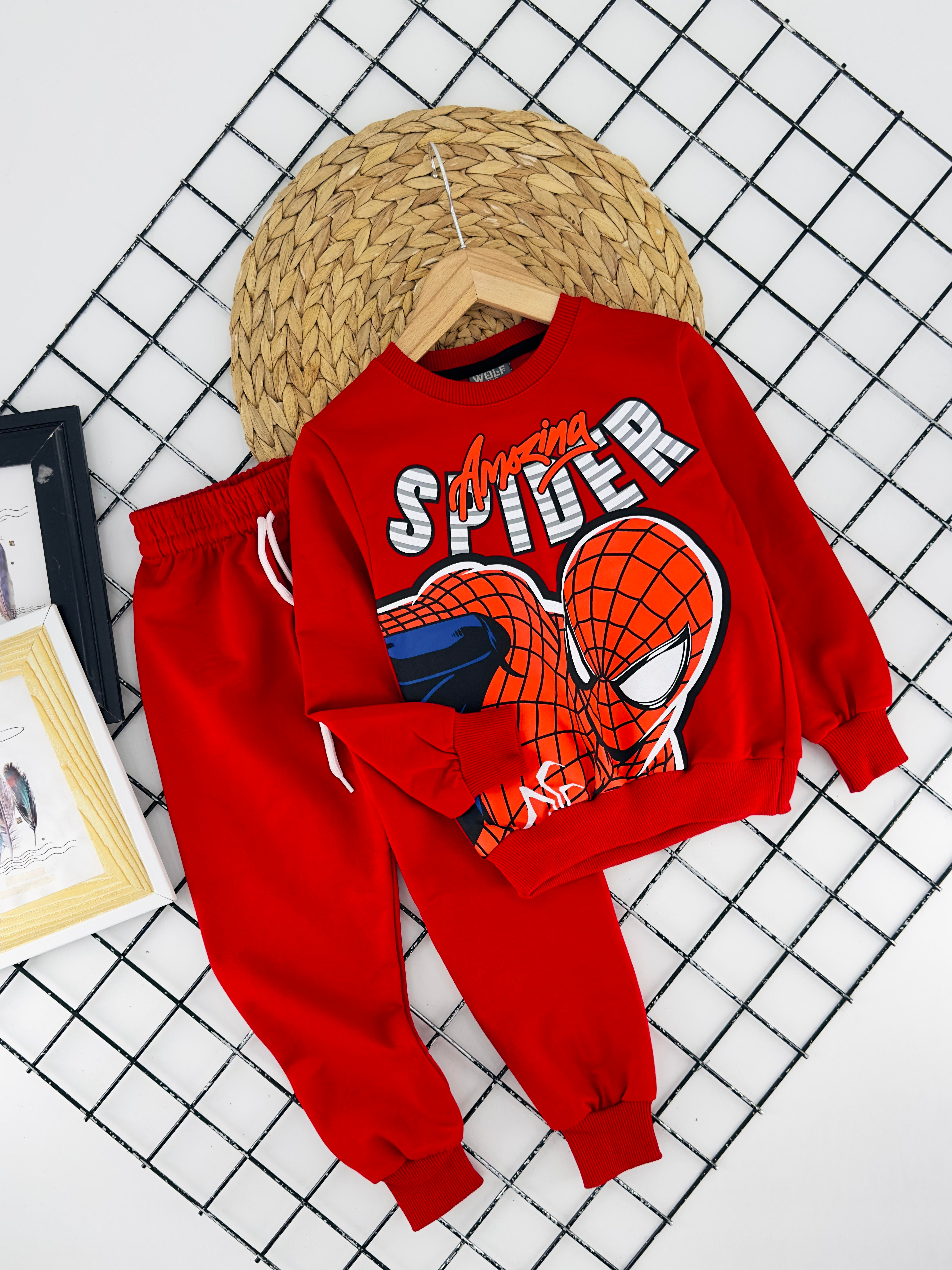 167-2 Spdm Yazılı Baskılı Erkek Çocuk İki İplik Penye Takım-KIRMIZI