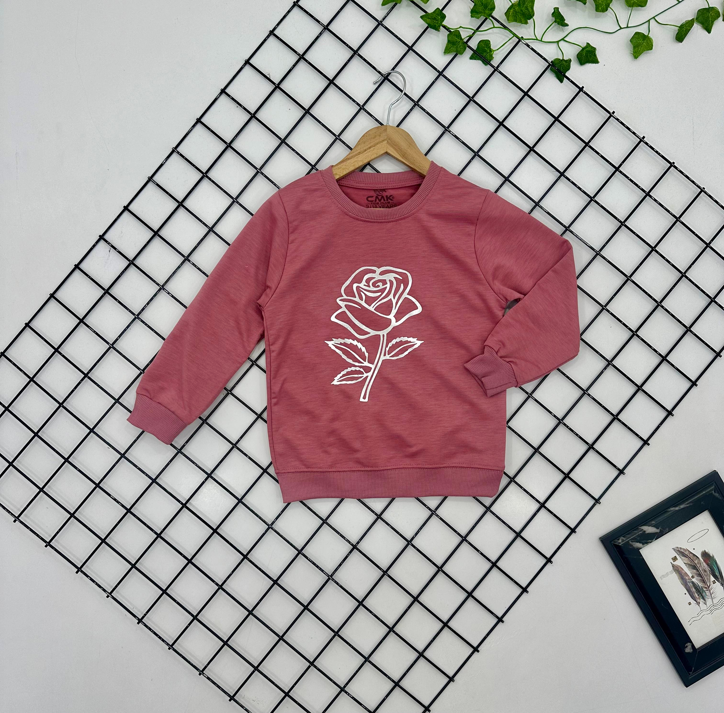 170330 Önü Gül Baskılı Kız Çocuk Mevsimlik Sweat-GÜL KURUSU