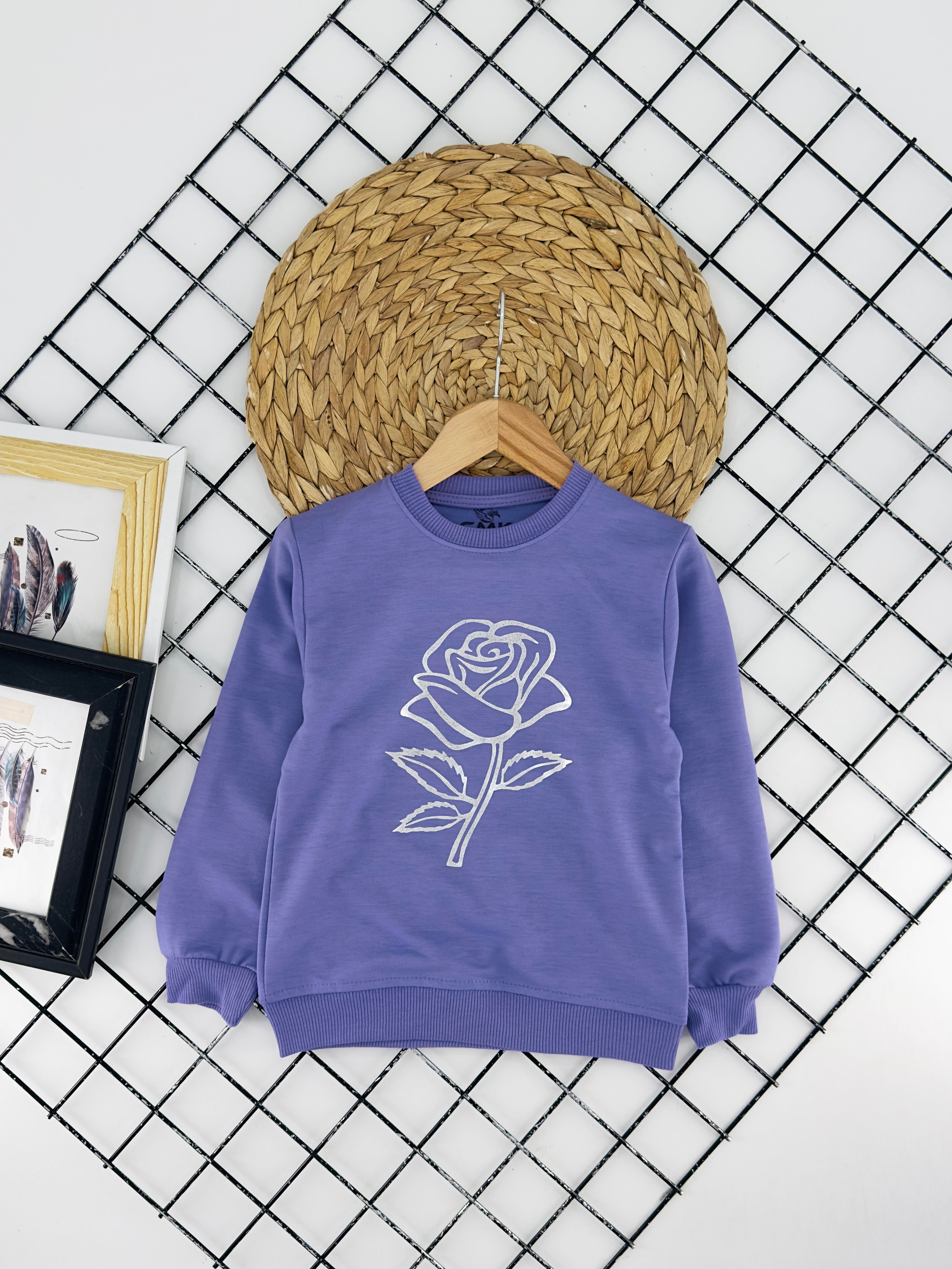 170330 Önü Gül Baskılı Kız Çocuk Mevsimlik Sweat-LİLA