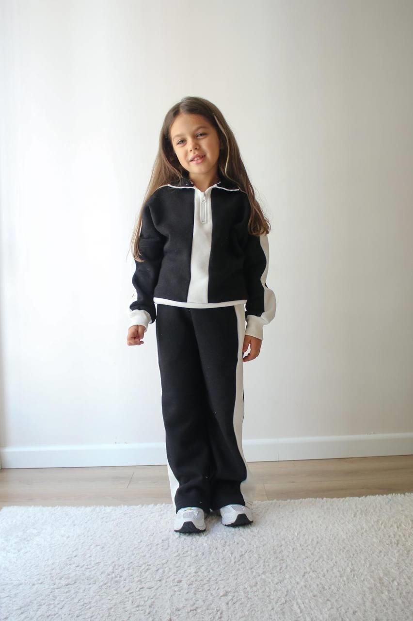 17210 Yakası Fermuarlı Üç İp Şardonlu Kız Çocuk Takım-SİYAH
