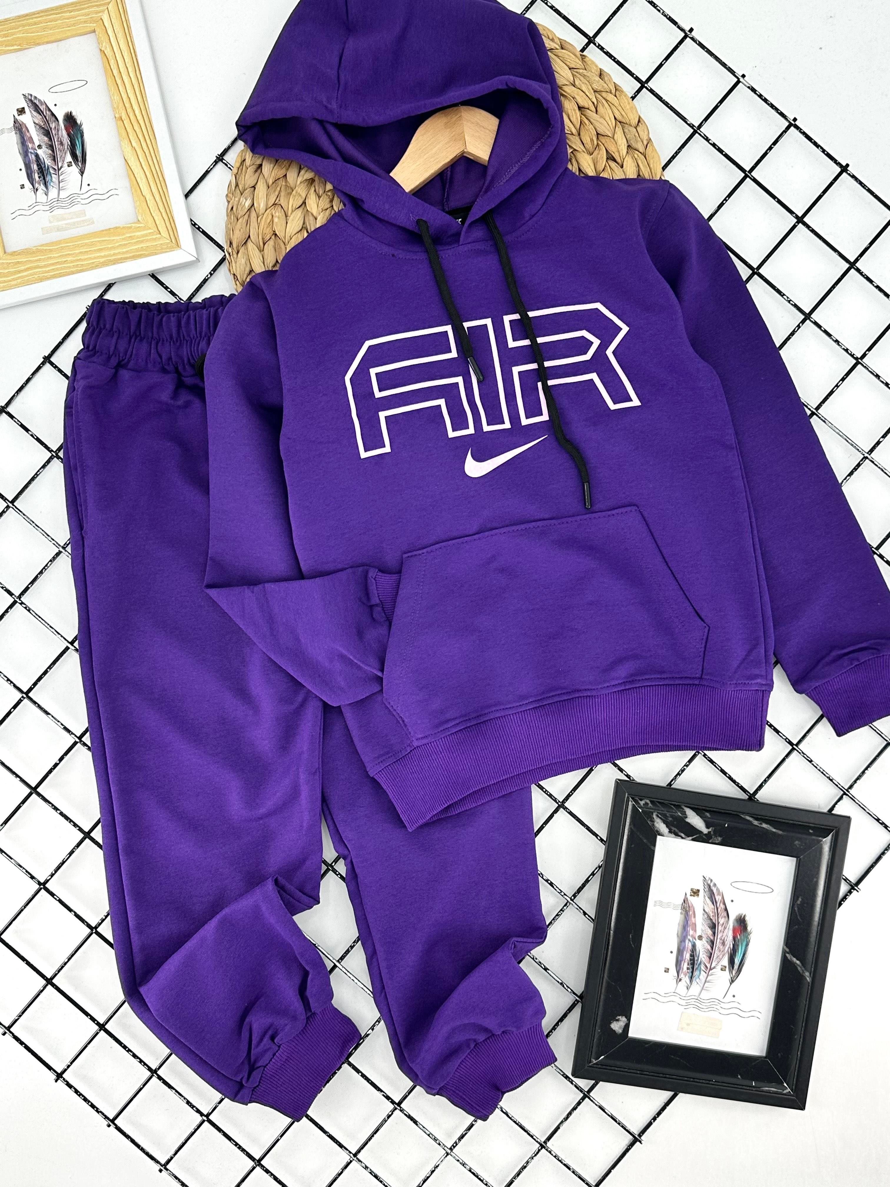 180-4 Nk Aır Baskılı Kapşonlu İki İplik Unısex Penye Eşofman Takımı-MOR