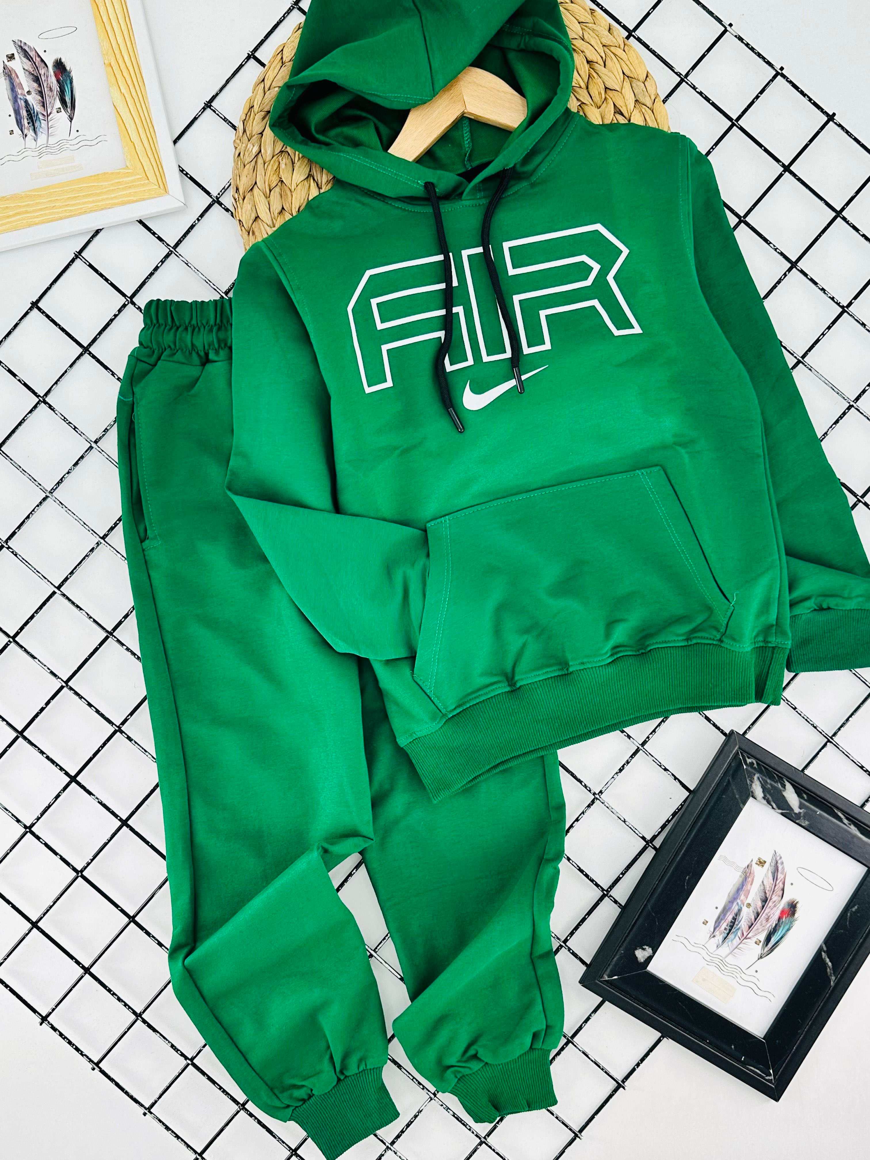180-4 Nk Aır Baskılı Kapşonlu İki İplik Unısex Penye Eşofman Takımı-YEŞİL