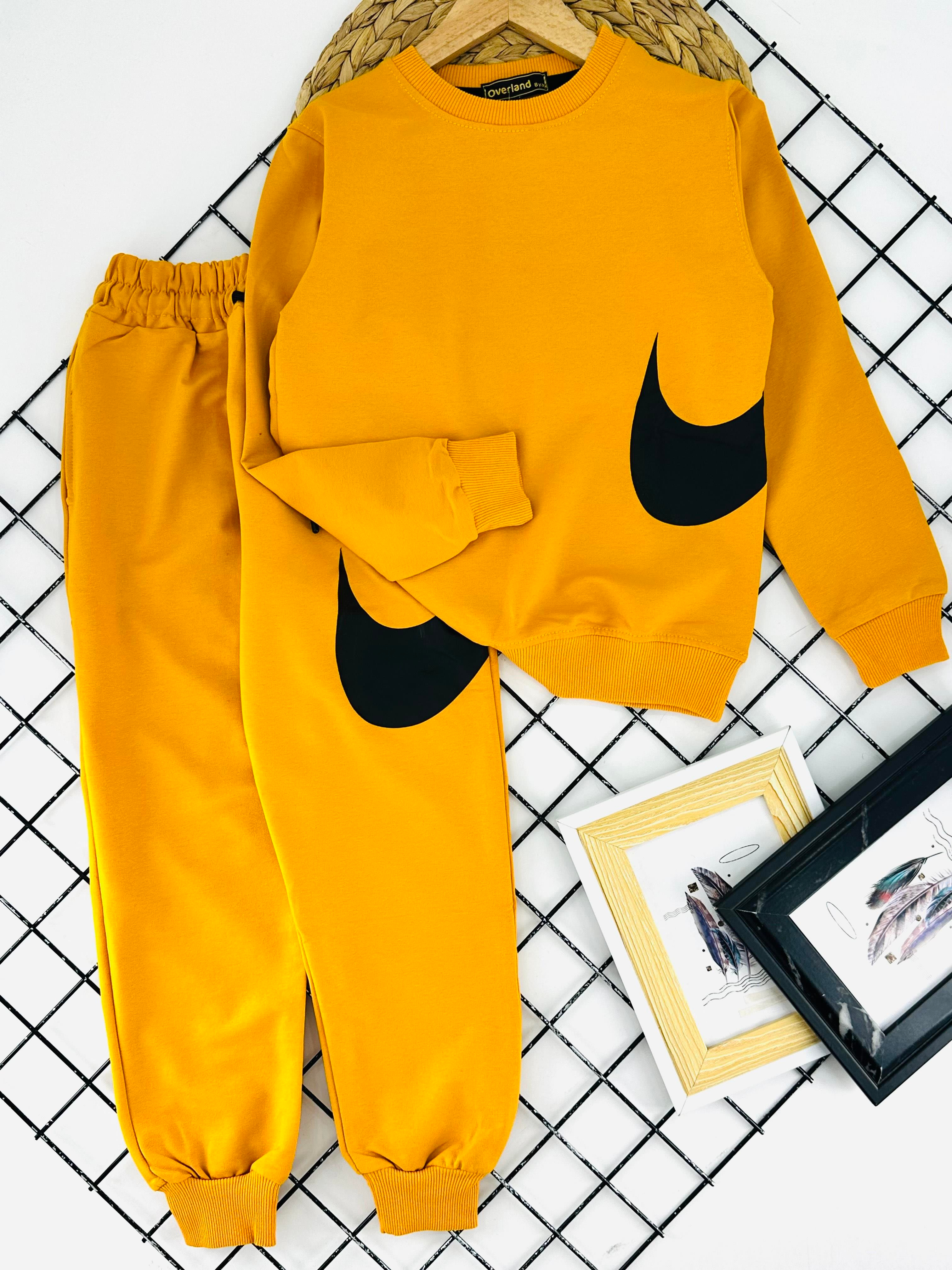 180-7 Yuvarlak Yakalı Unısex İki İplik Penye Eşofman Takımı-HARDAL