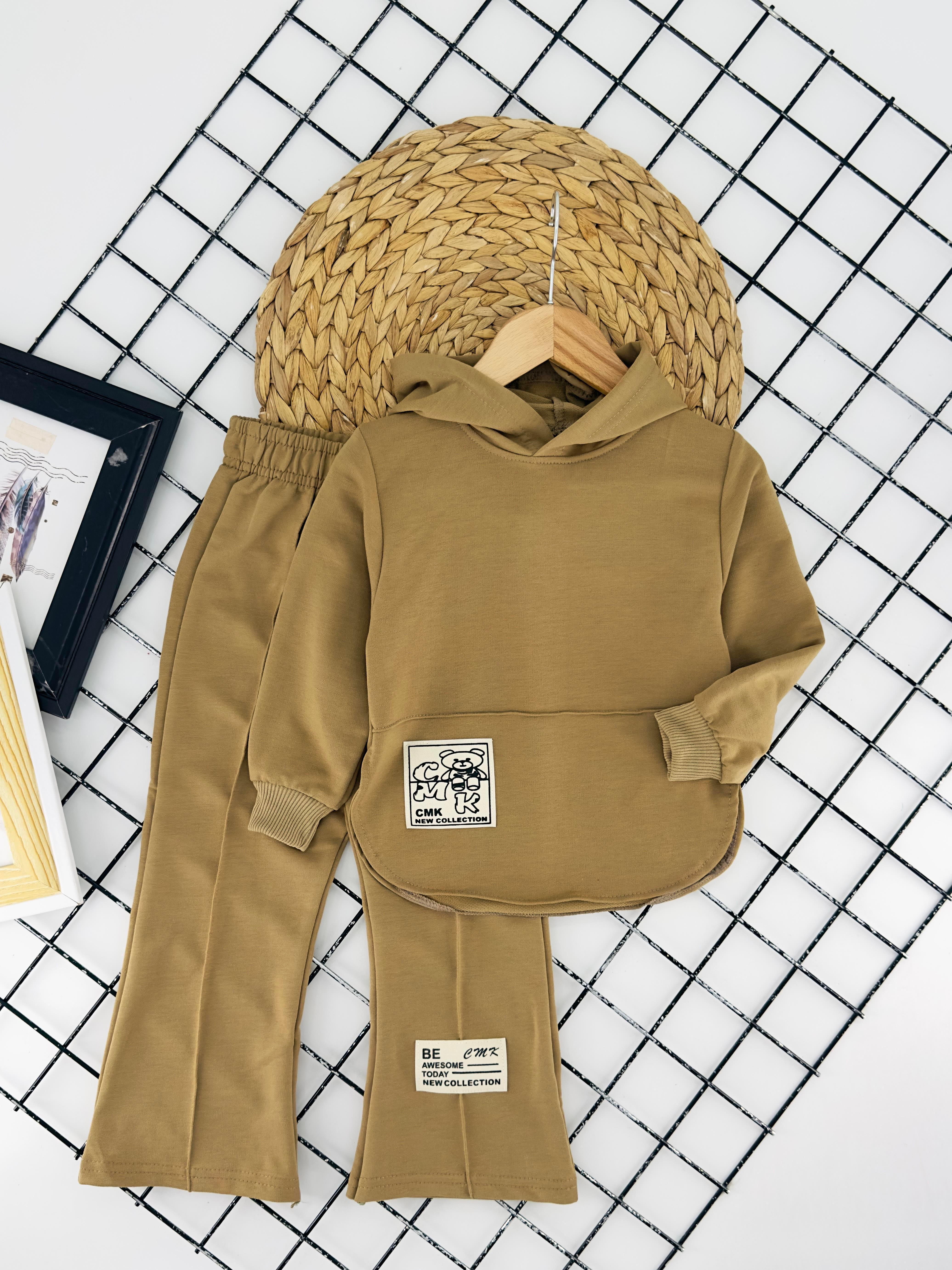 190000 Kapşonlu Ayıcık Baskılı Kız Çocuk İki İplik Penye Takım-TABA