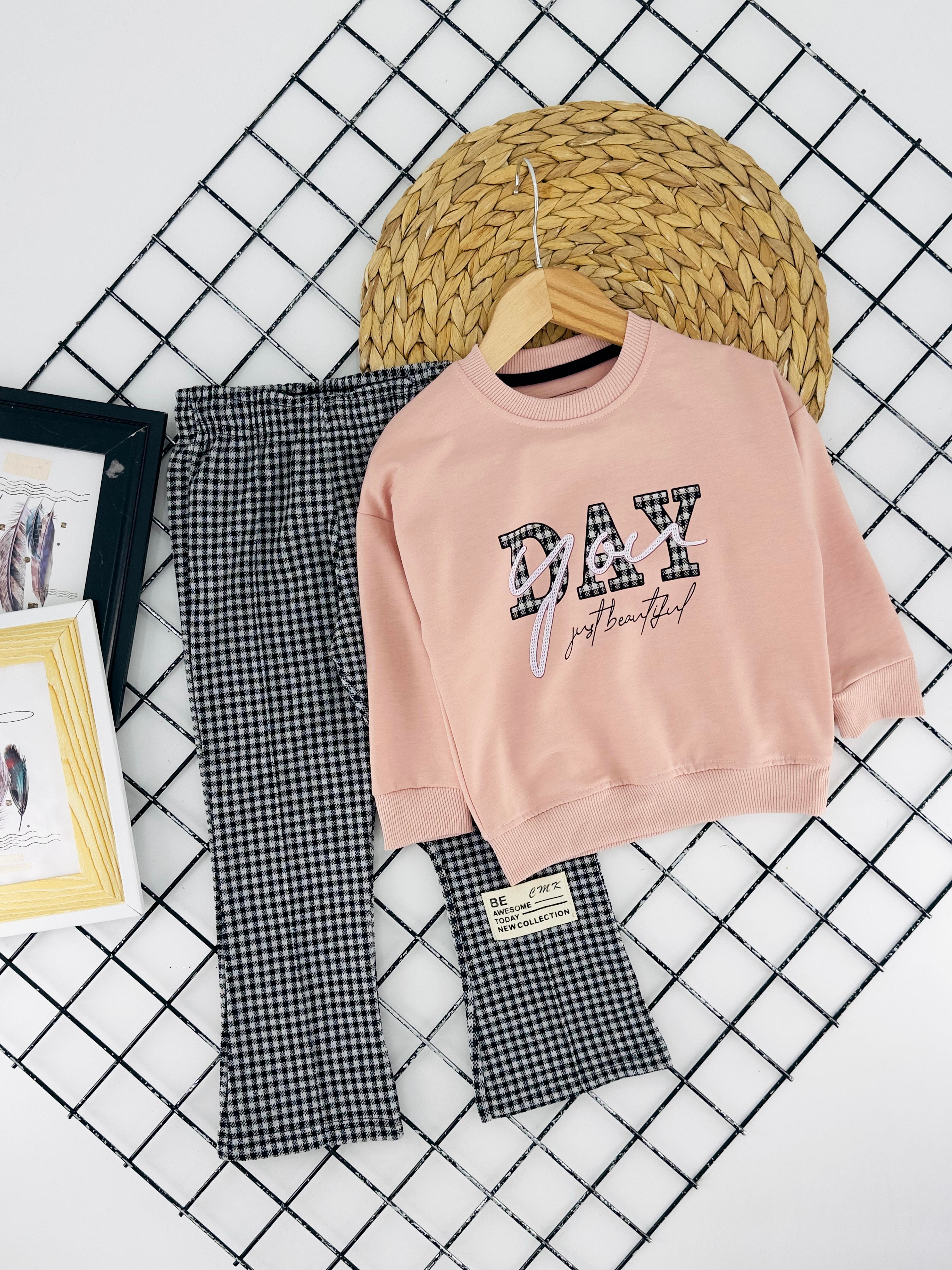 190035 Day You Baskılı Kız Çocuk İki İplik Penye Takım-PUDRA