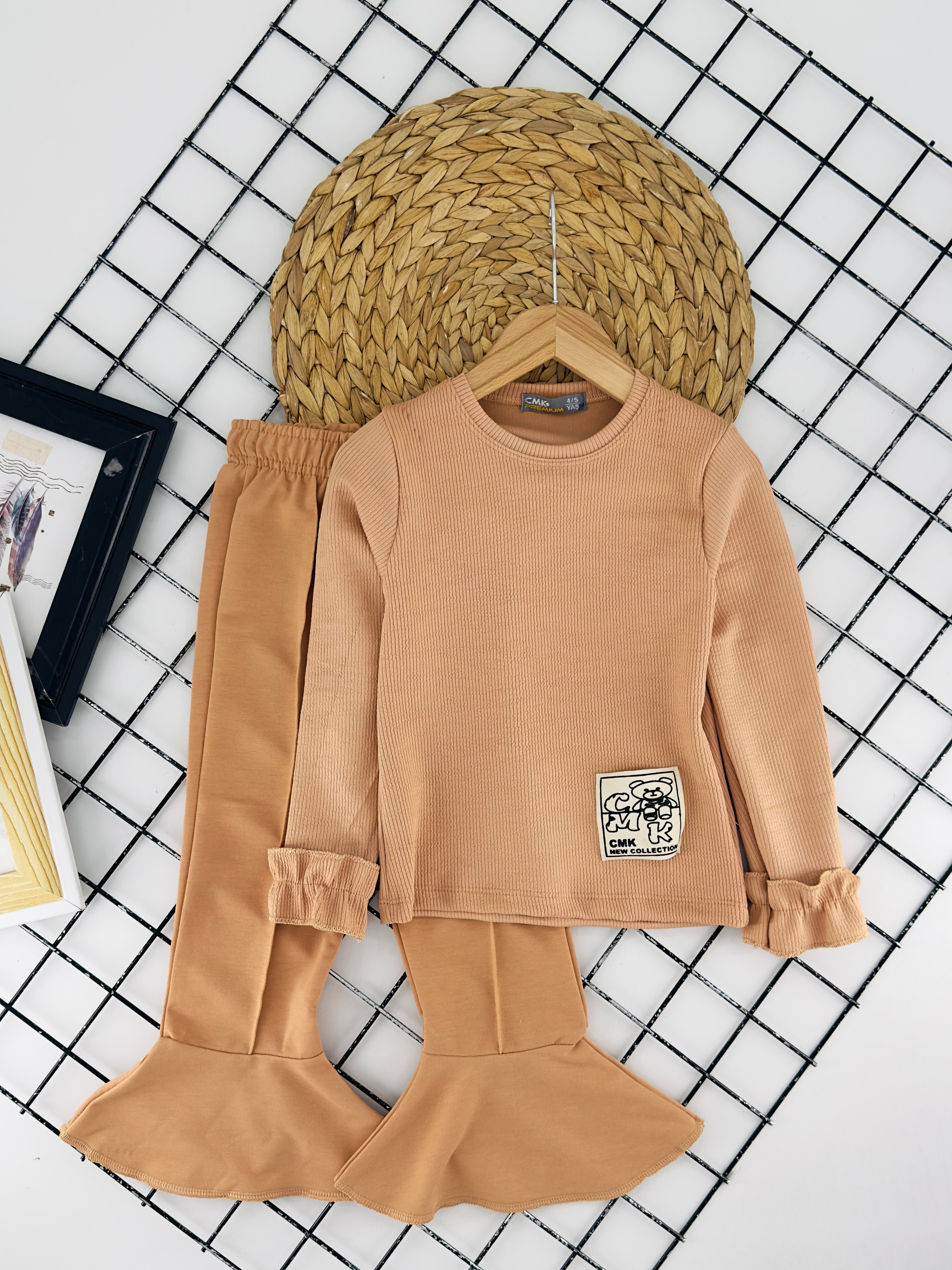 190045 Kolları Fırfırlı İspanyol Paça Kız Çocuk Takım-TABA