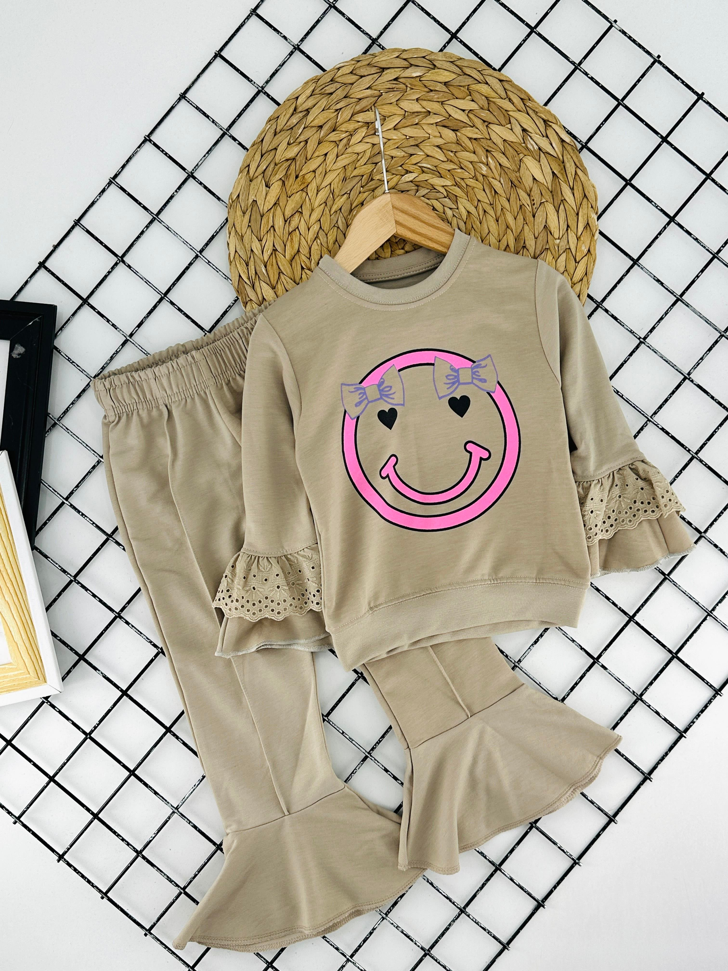 190075 Gülen Yüz Baskılı Kız Çocuk İki İplik Penye Takım-TAŞ