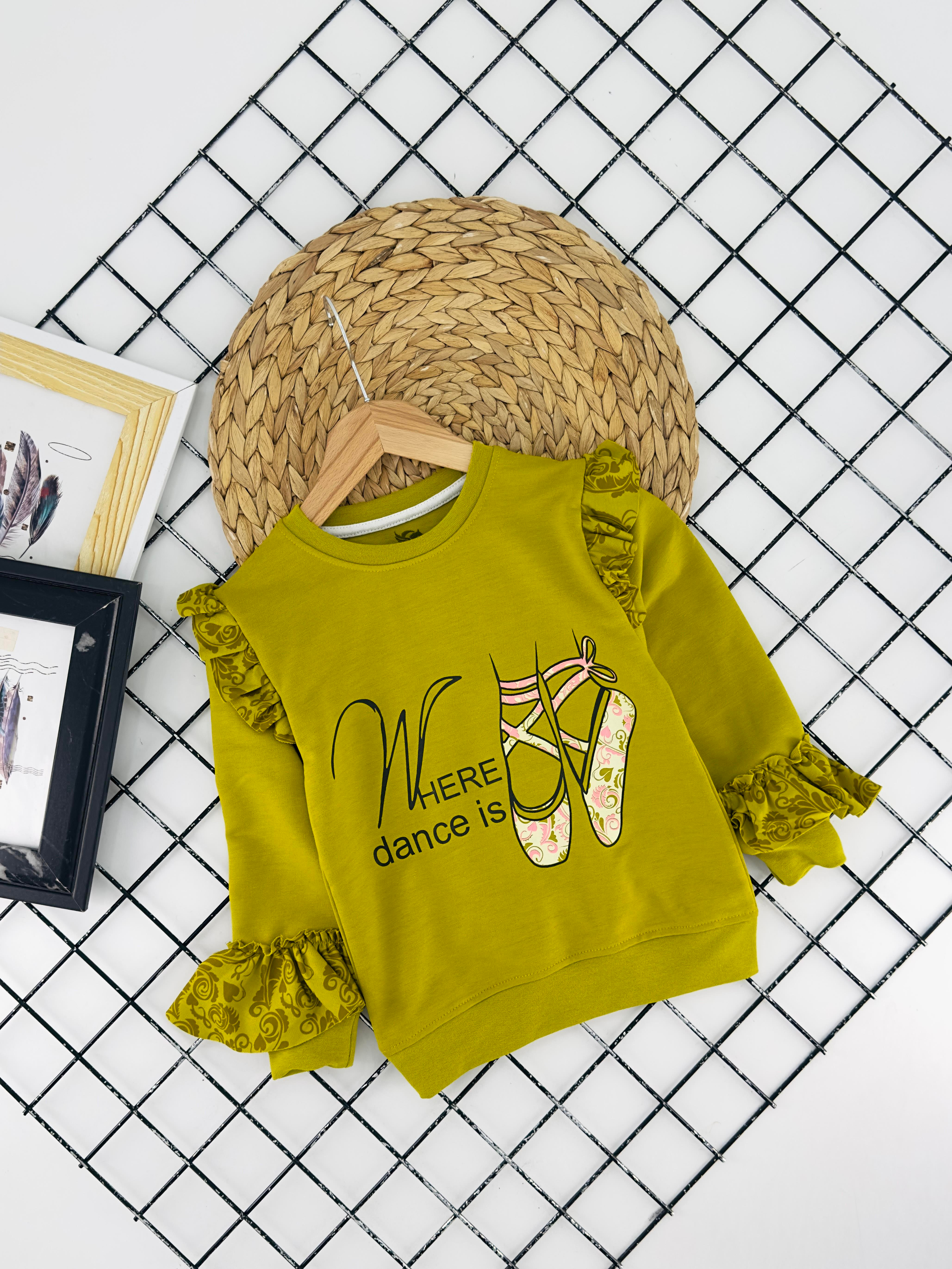 190405 Where Yazılı Yanları Kız Çocuk Penye Bady-FISTIK YEŞİLİ