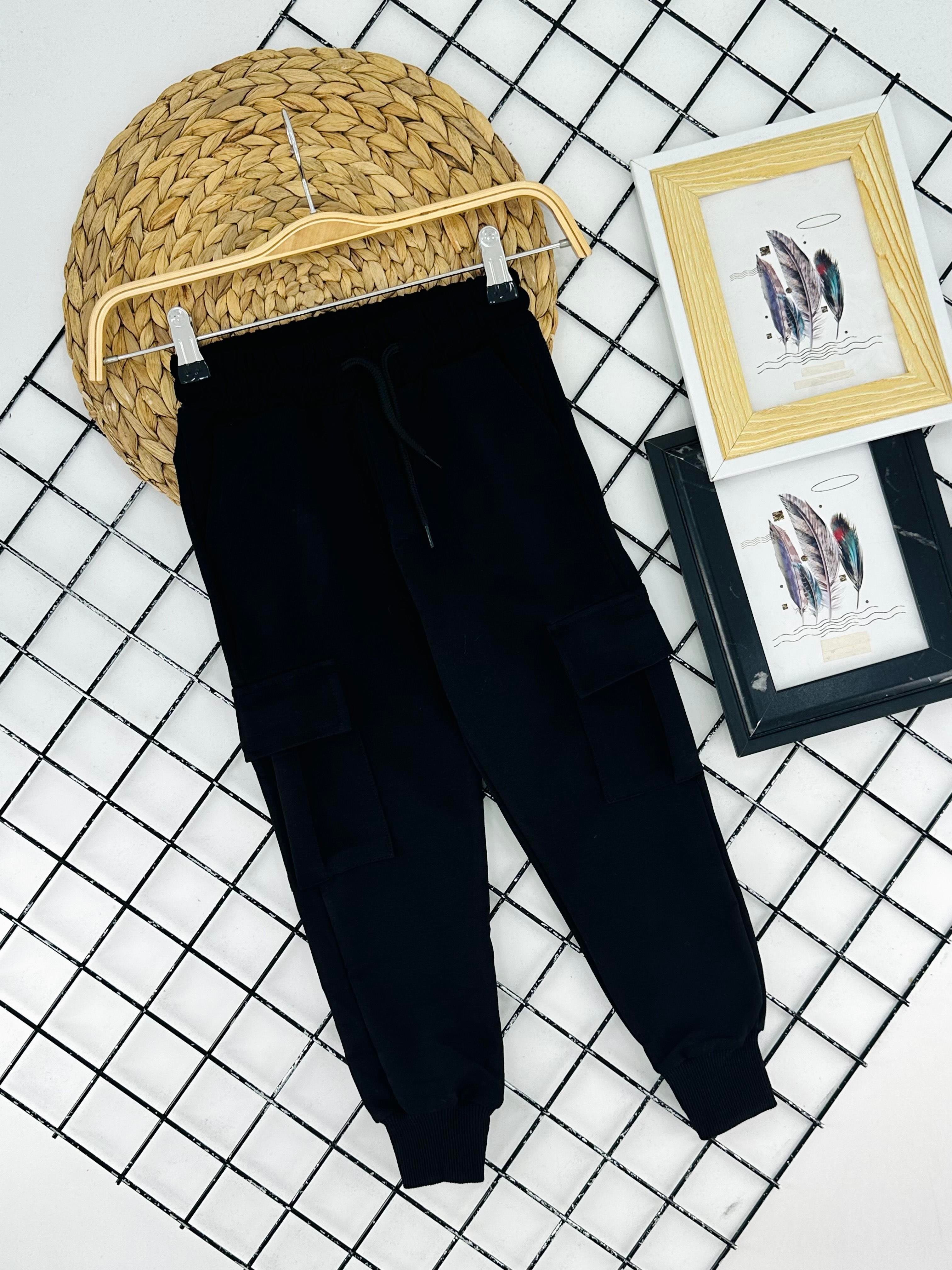 2000-2 Kargo Cepli Paça Lastikli Unısex İki İplik Penye Tek Alt-SİYAH