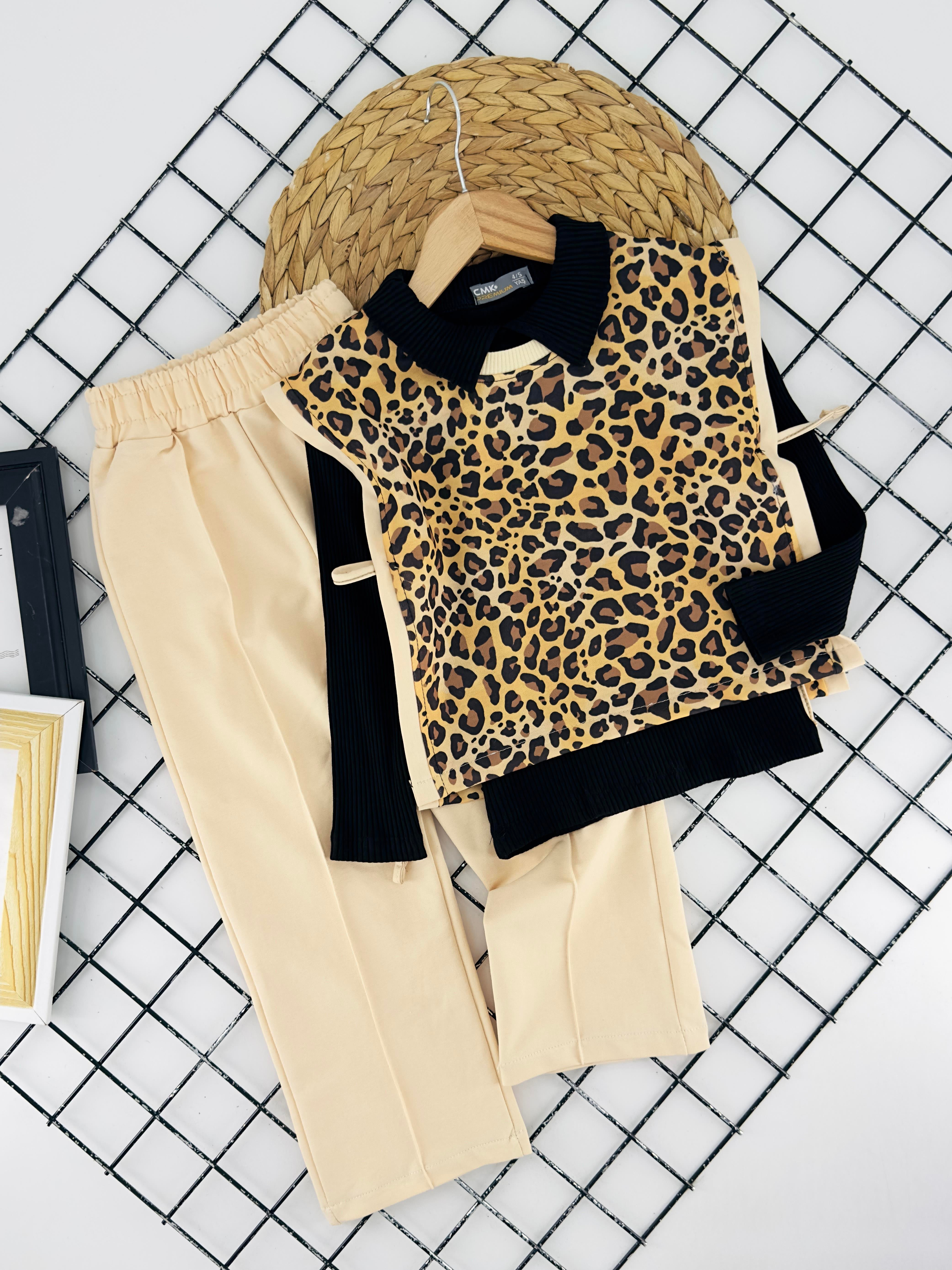 200885 İçi Badili Süveterli Kız Çocuk Üçlü Takım-KREM