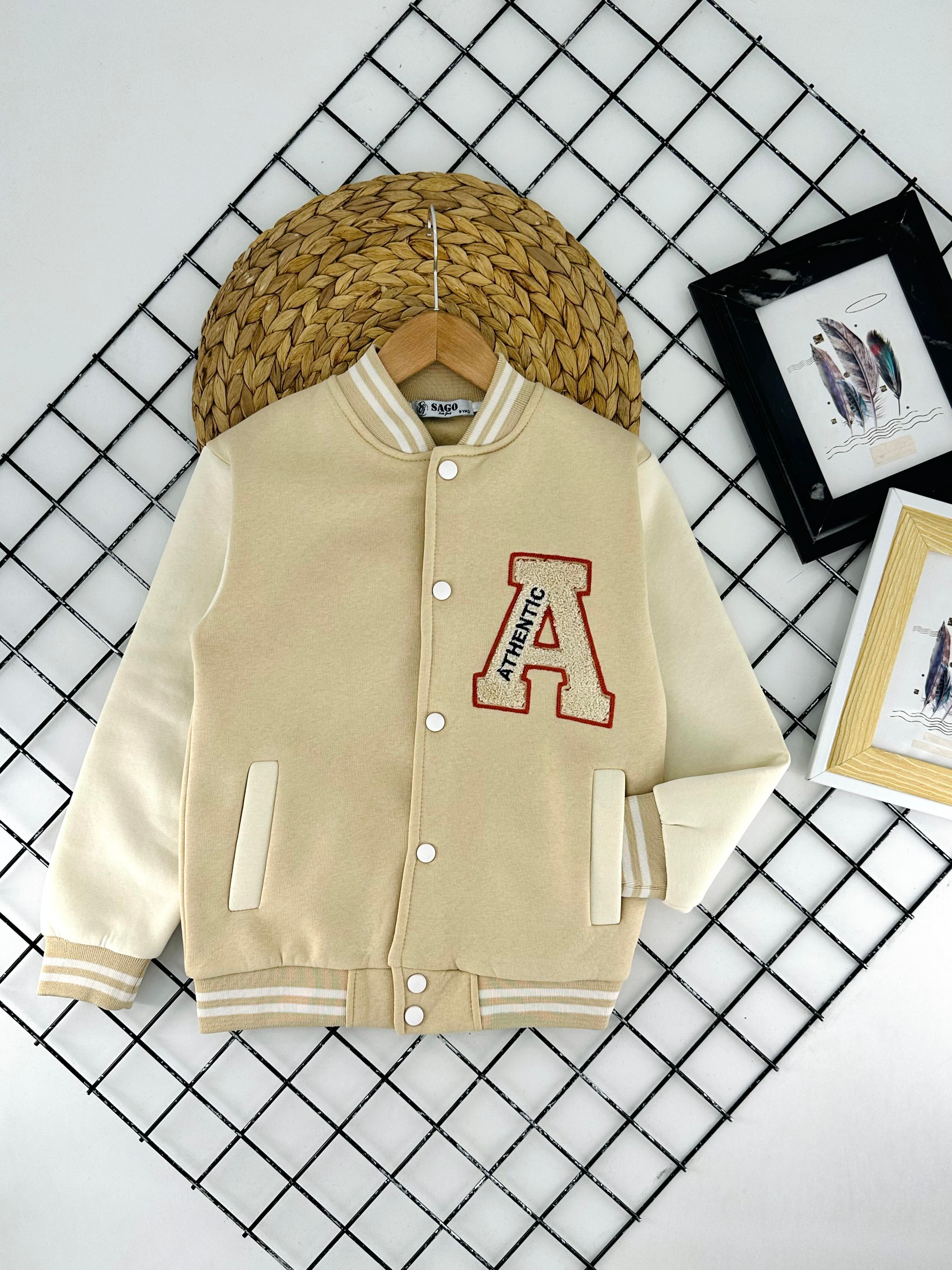 2221 A Nakışlı Çıtçıtlı Erkek Çocuk Üç İplik Şardonlu Hırka-BEJ