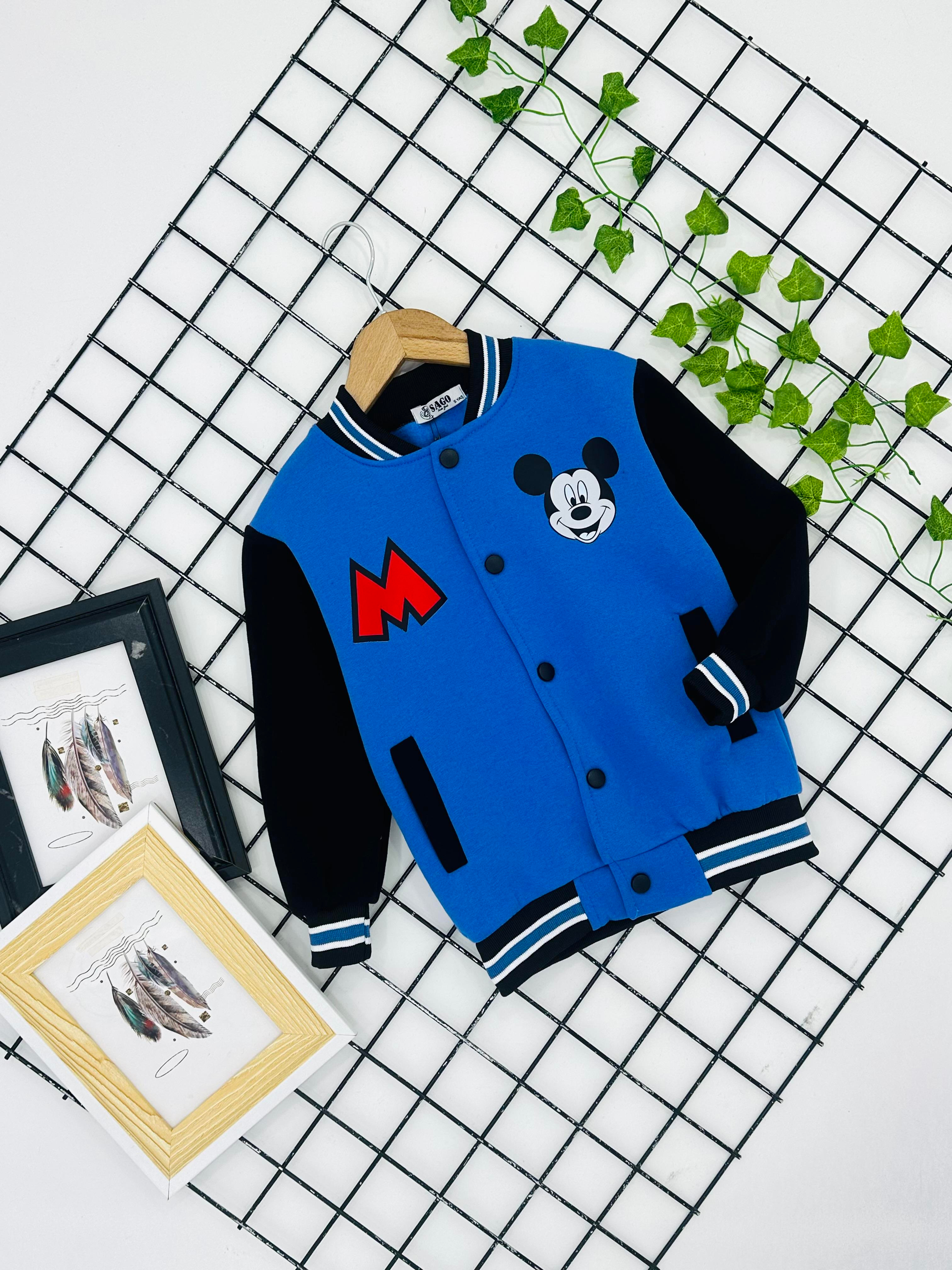 2166 Miki Mouse M Baskılı Önü Çıtçıtlı Üç İplik Unısex Kolej Ceket-MAVİ