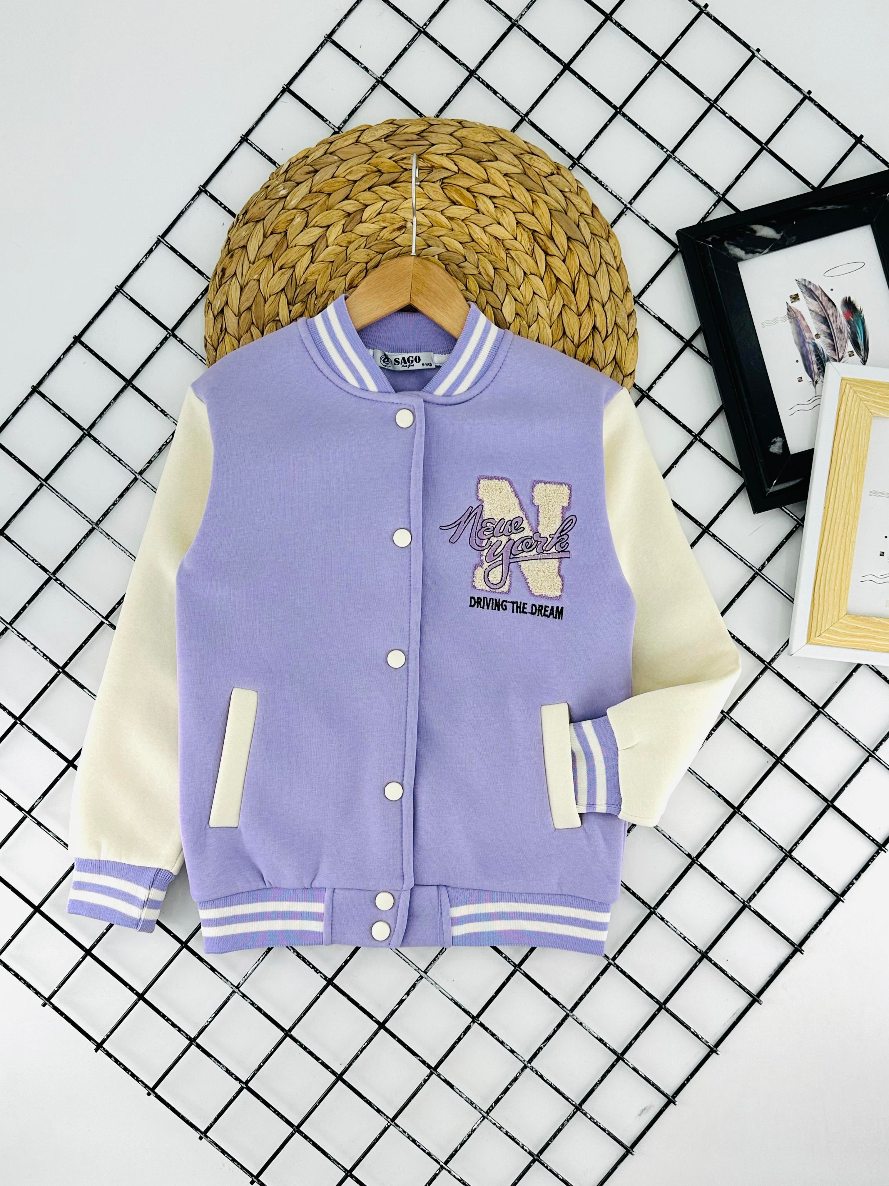 2225 N Nakışlı Kız Çocuk Üç İplik Şardonlu Hırka-LİLA