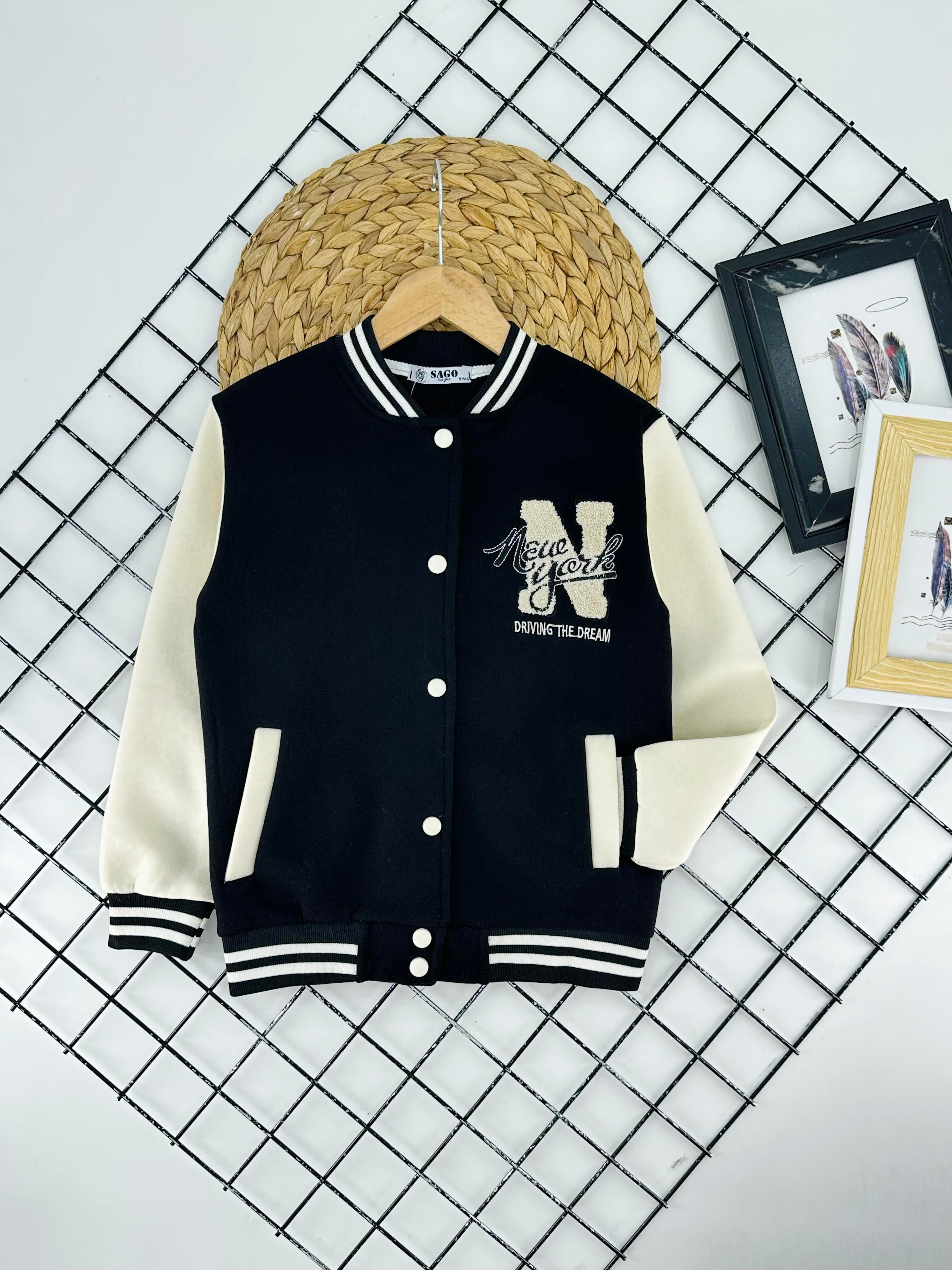 2225 N Nakışlı Kız Çocuk Üç İplik Şardonlu Hırka-SİYAH