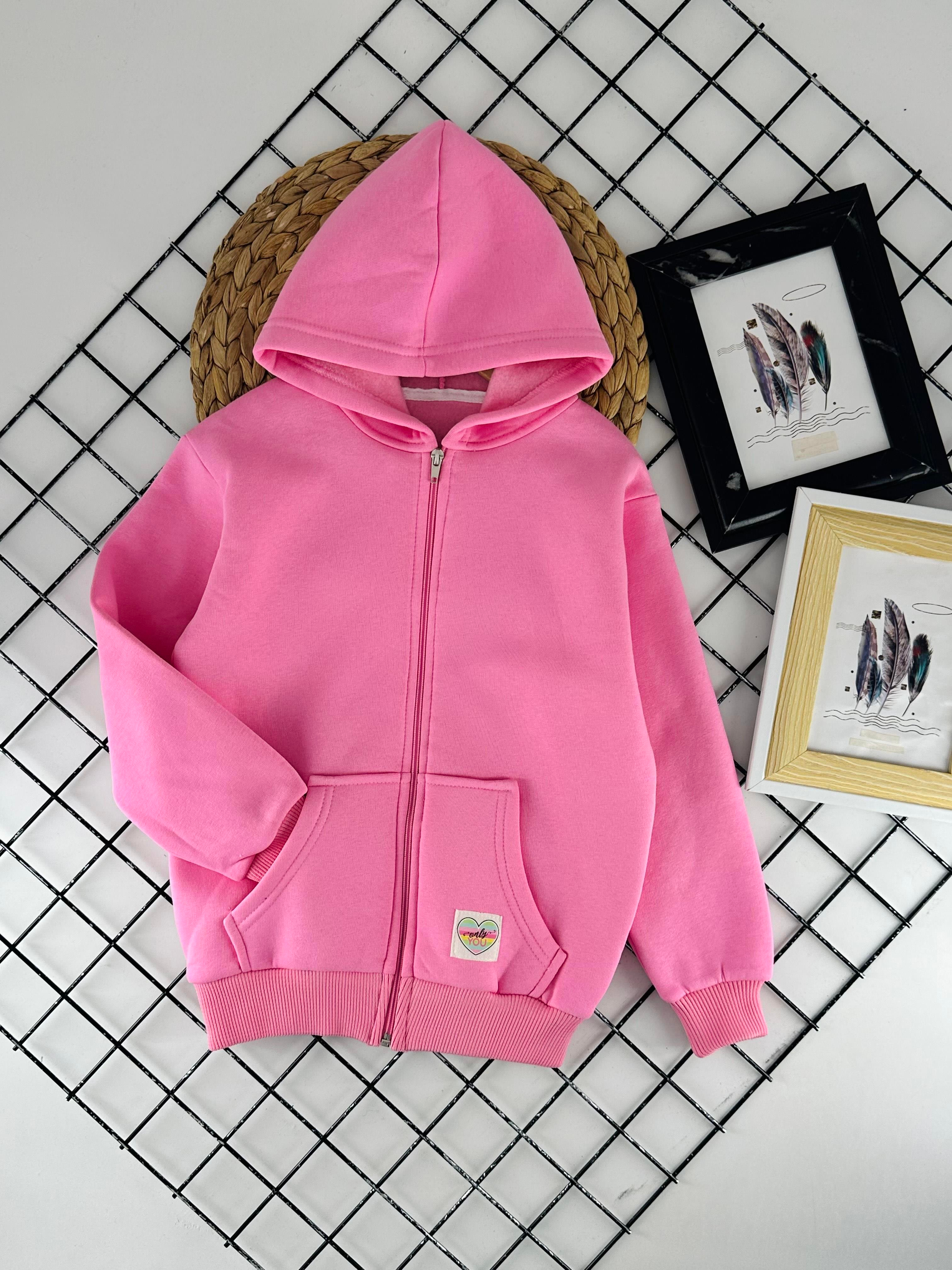 2226 Only You Yazılı Baskılı Kız Çocuk Üç İplik Hırka-PEMBE