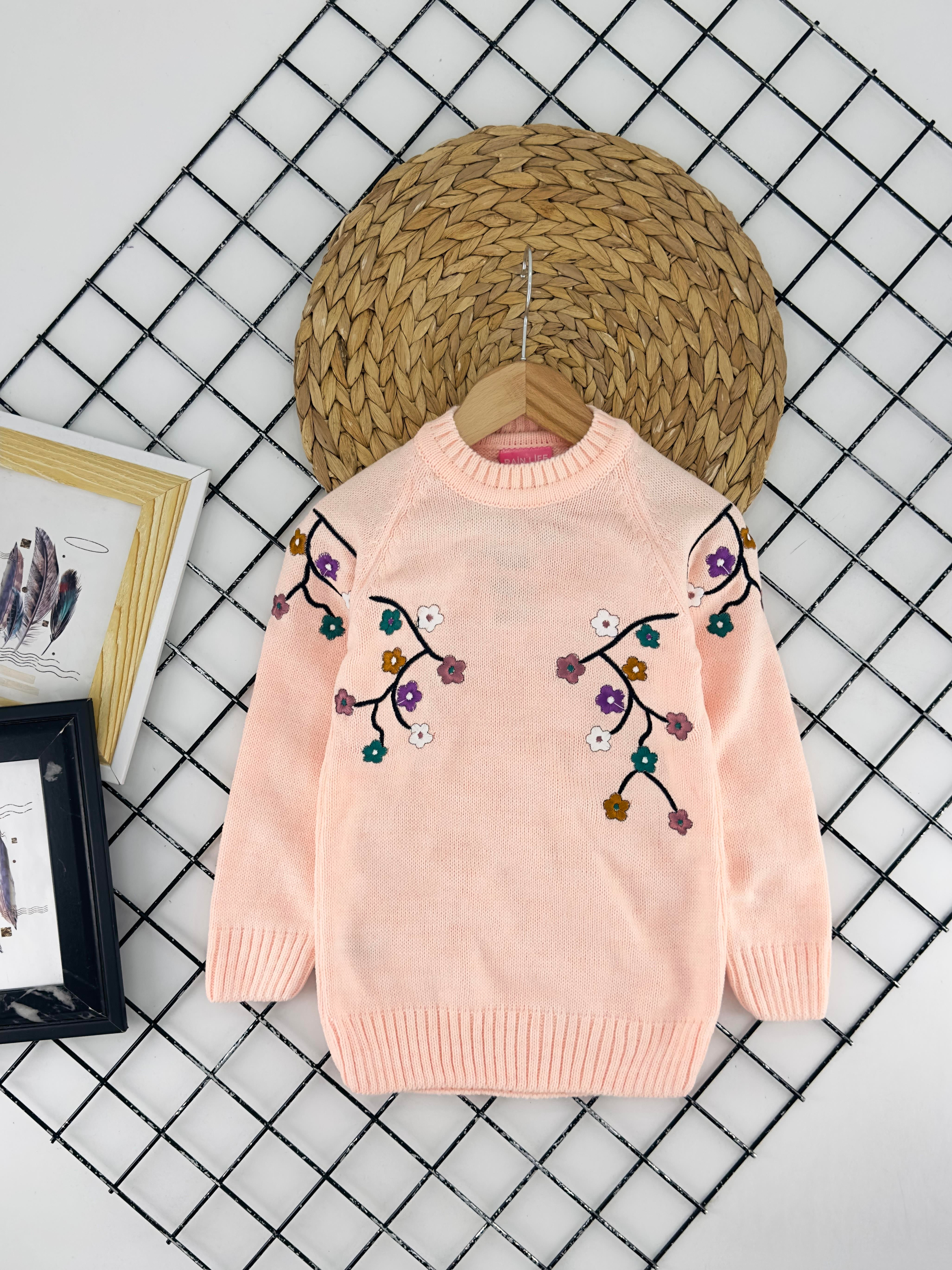 2322 Çiçek Nakışlı Kız Çocuk Triko Kazak-SOMON