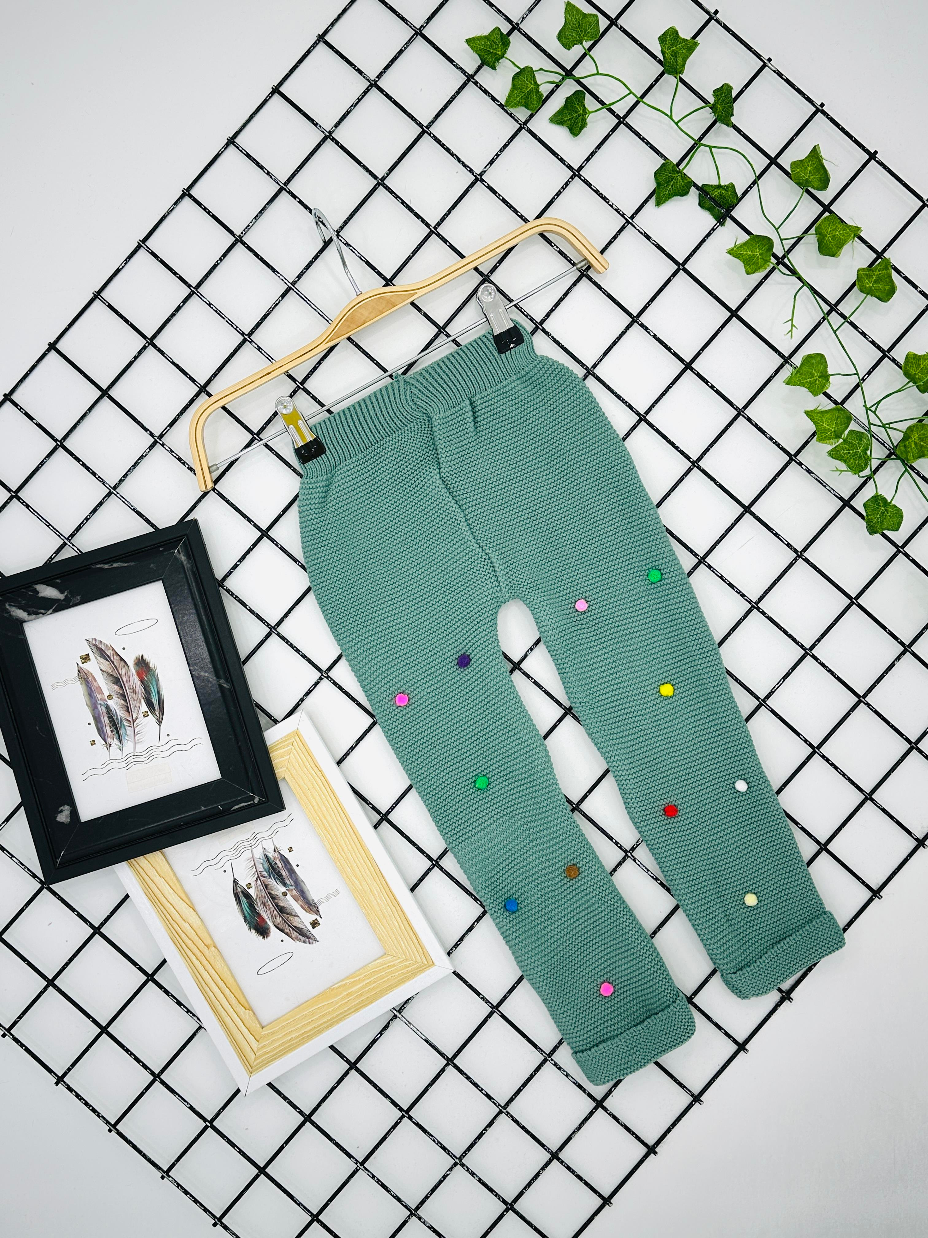 2409 Ponponlu Kız Çocuk Triko Pantolon-YEŞİL