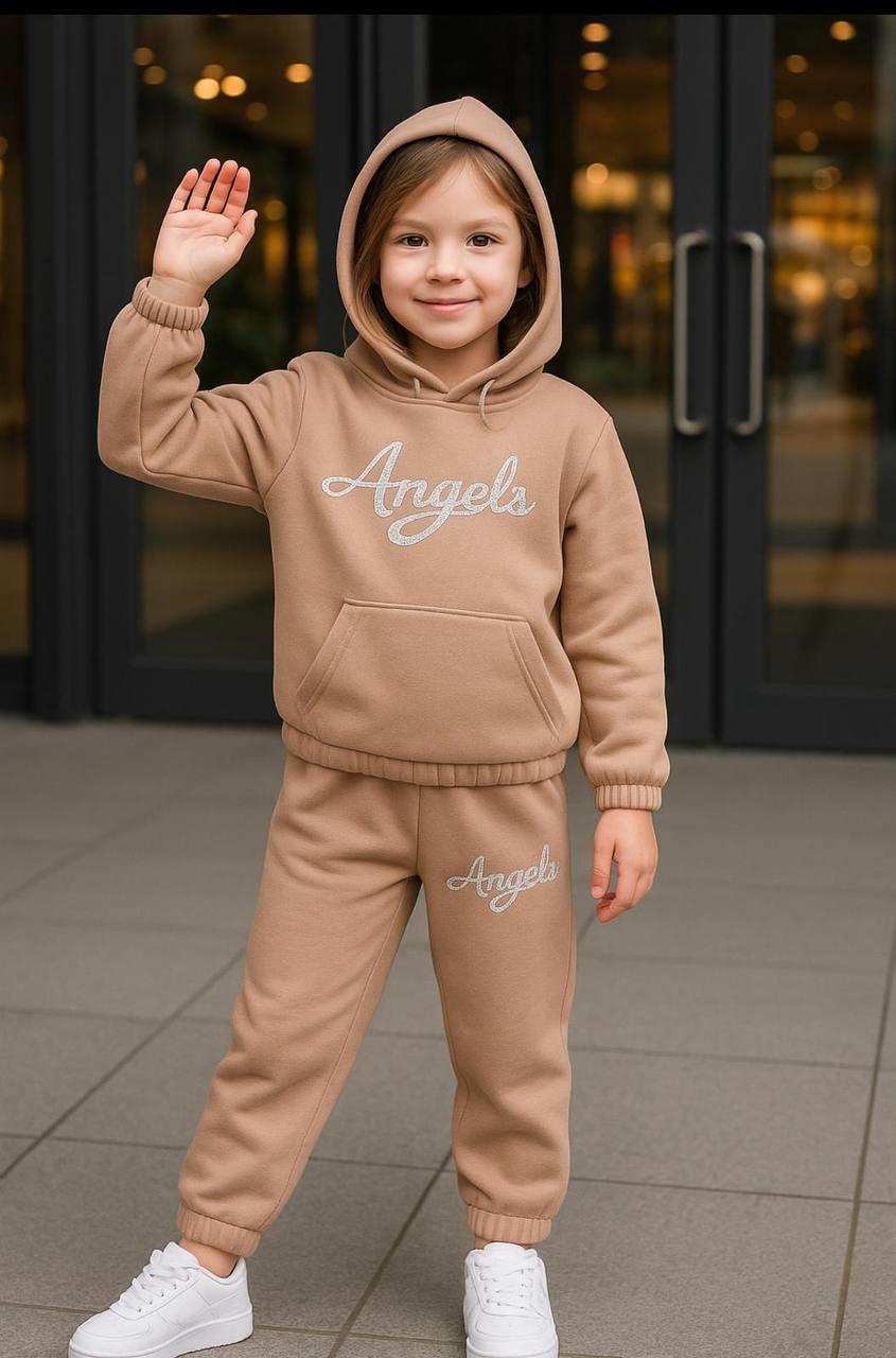 2431 Anglels Nakışlı Kapşonlu 3 İplik Kız Çocuk Takım-TAŞ