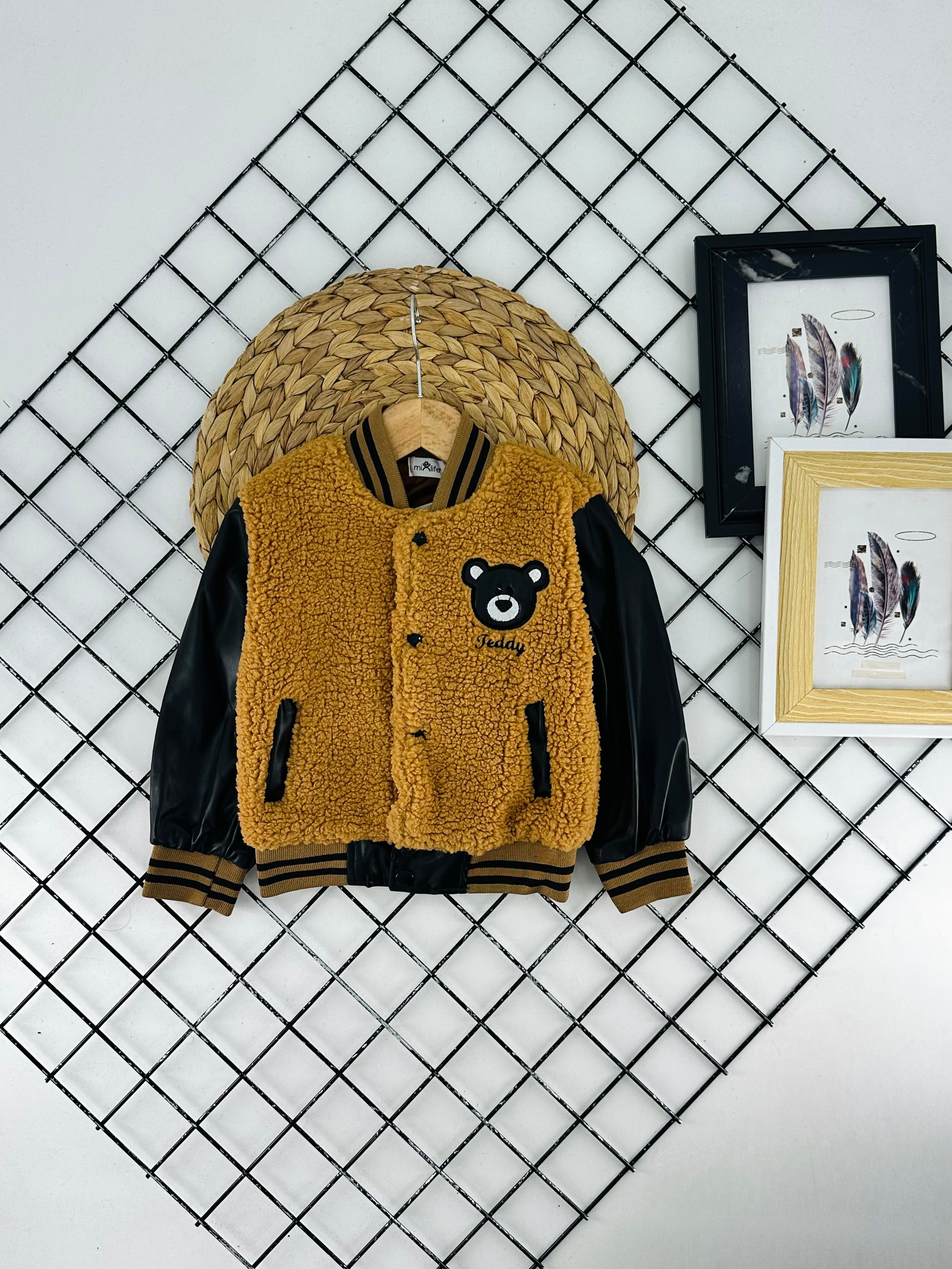 2505 Teddy Ayıcıklı Nakışlı Kolları Deri Kolej Erkek Çocuk Hırka-TABA