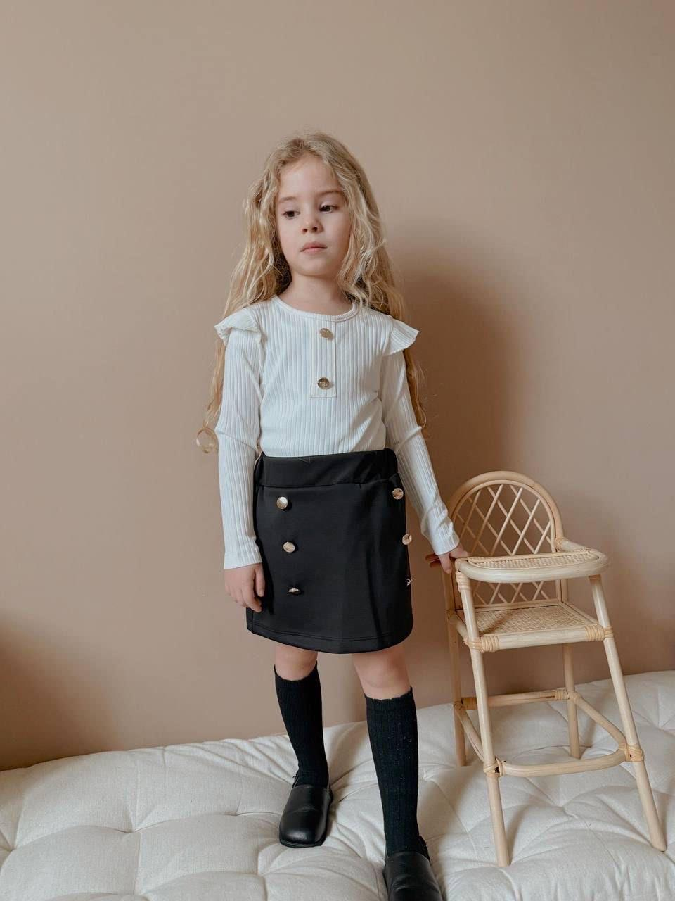 2607-1 Kolları Fırfırlı Düğmeli Kız Çocuk Etekli Takım-BEYAZ