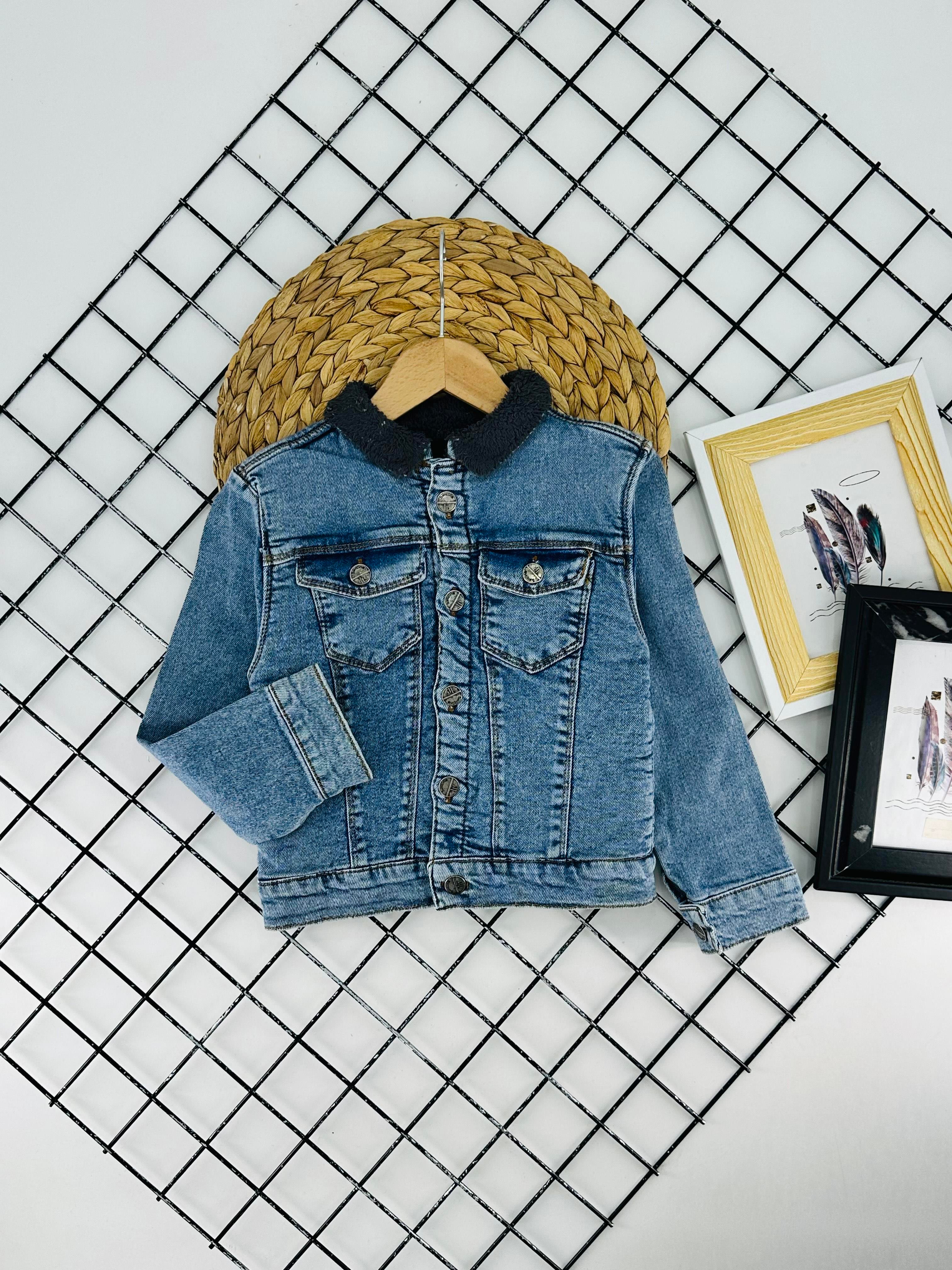 2810-3 İçi Polarlı Erkek Çocuk Kot Mont-MAVİ