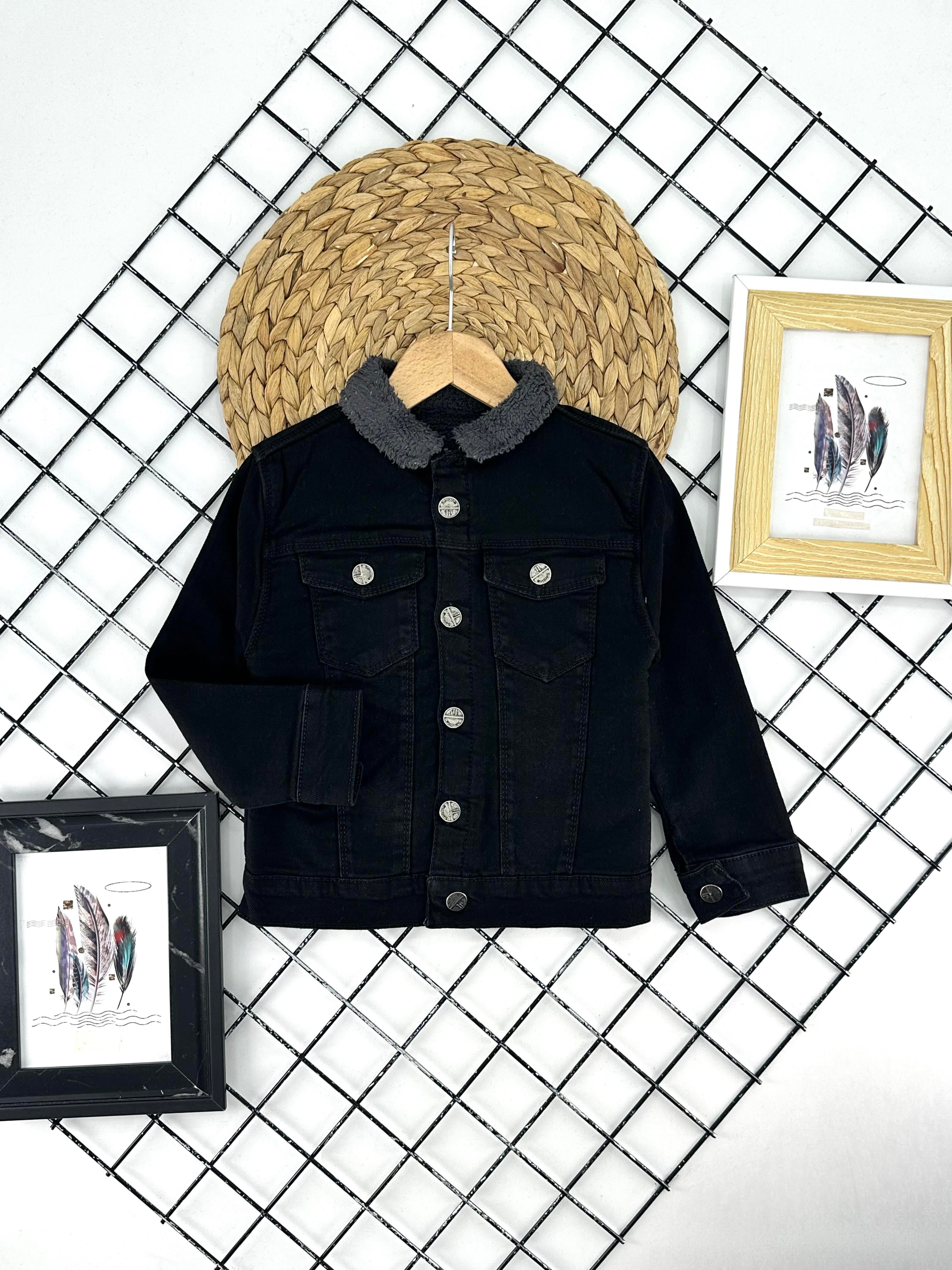 2810-4 Yakası İçi Polarlı Erkek Çocuk Kot Mont-SİYAH
