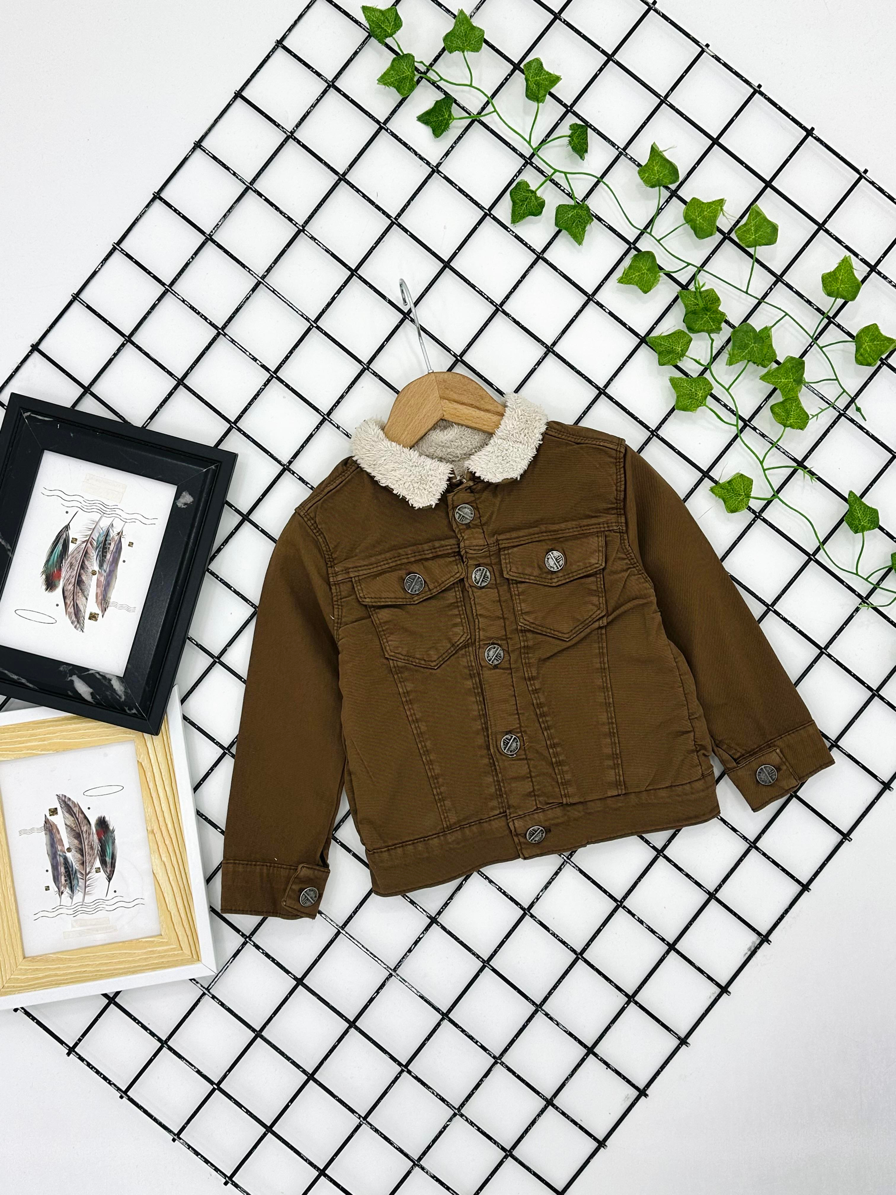 2810 Erkek Çocuk Kanvas Kumaş İçi Polarlı Mont-KAHVE