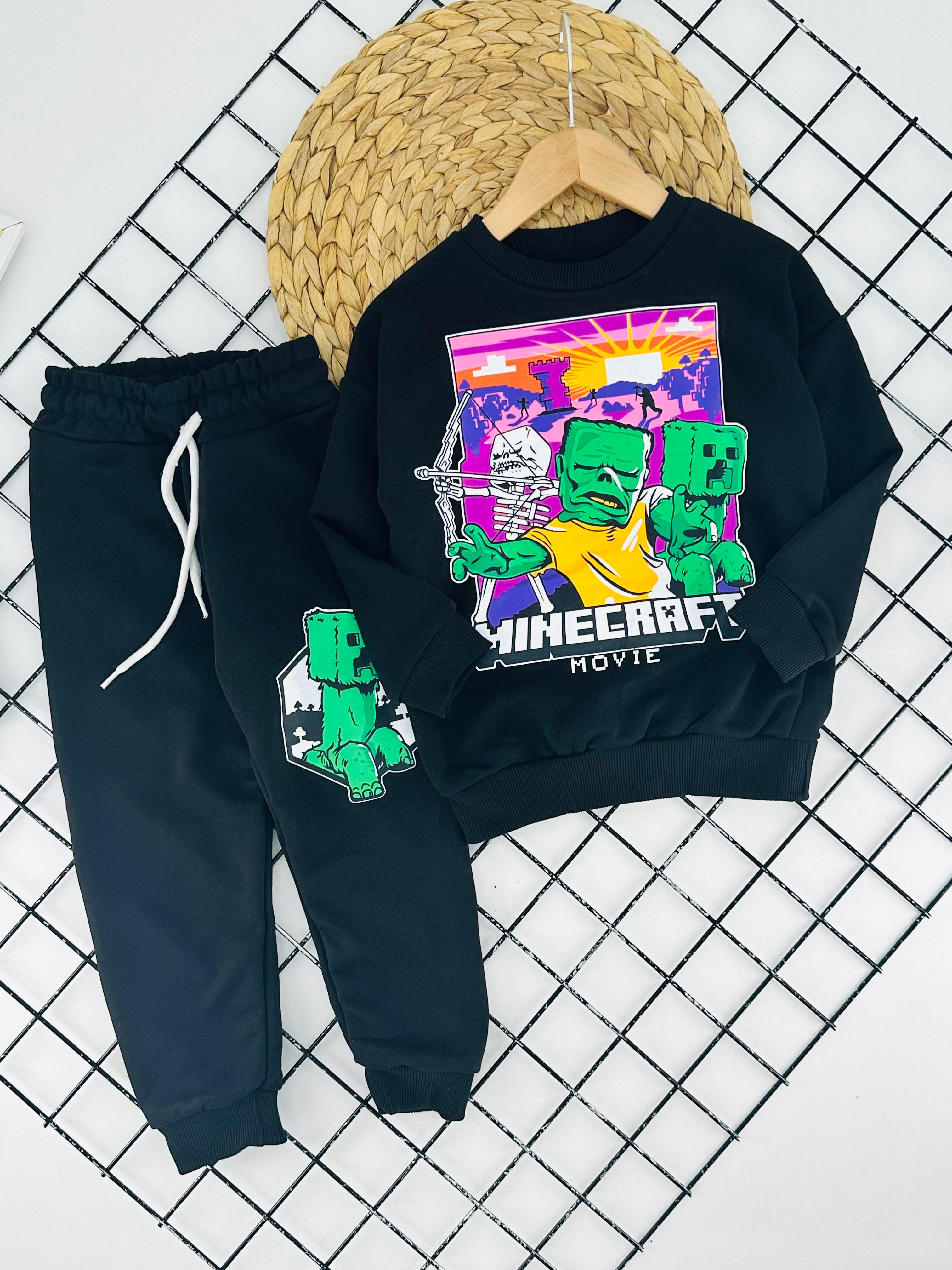 2828 MncRft Baskılı Yazılı Erkek Çocuk Şardonsuz 3 İplik Takım-SİYAH