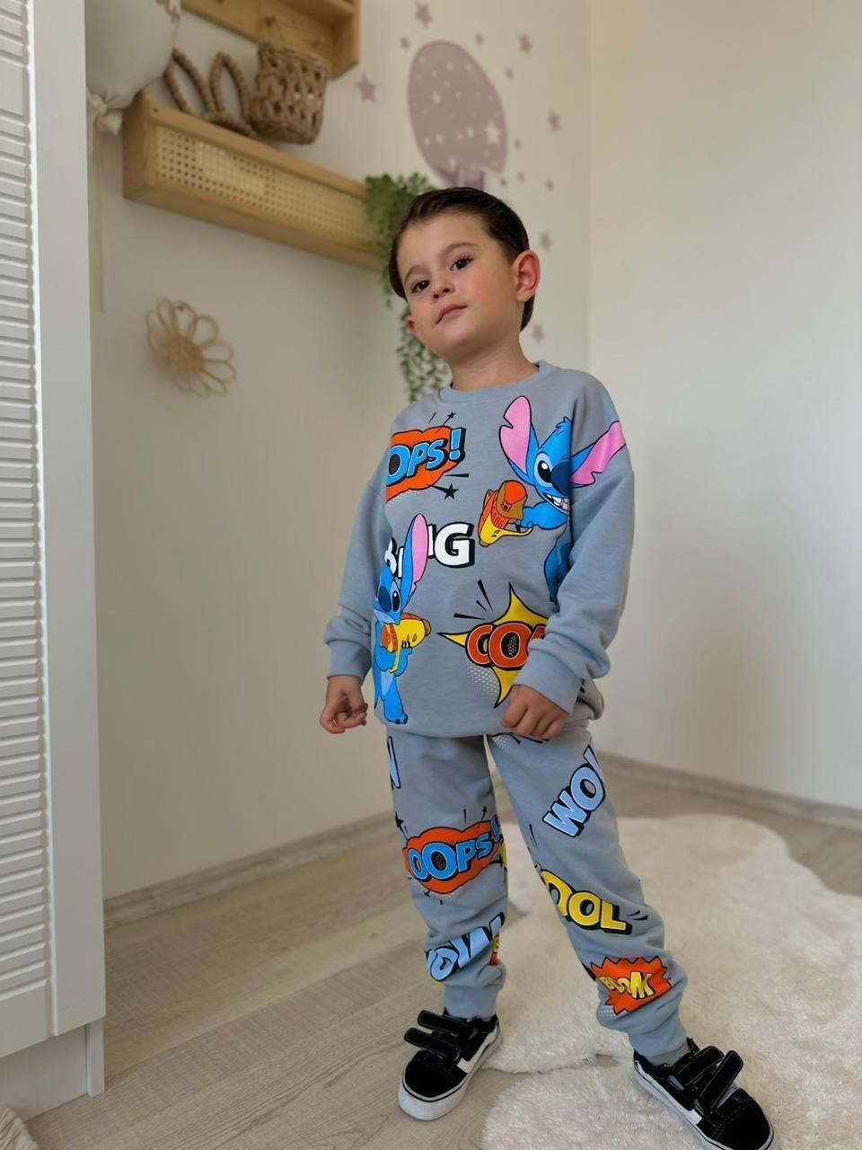 2854 Stch Baskılı Yazılı Erkek Çocuk Şardonsuz 3 İplik Takım-GRİ