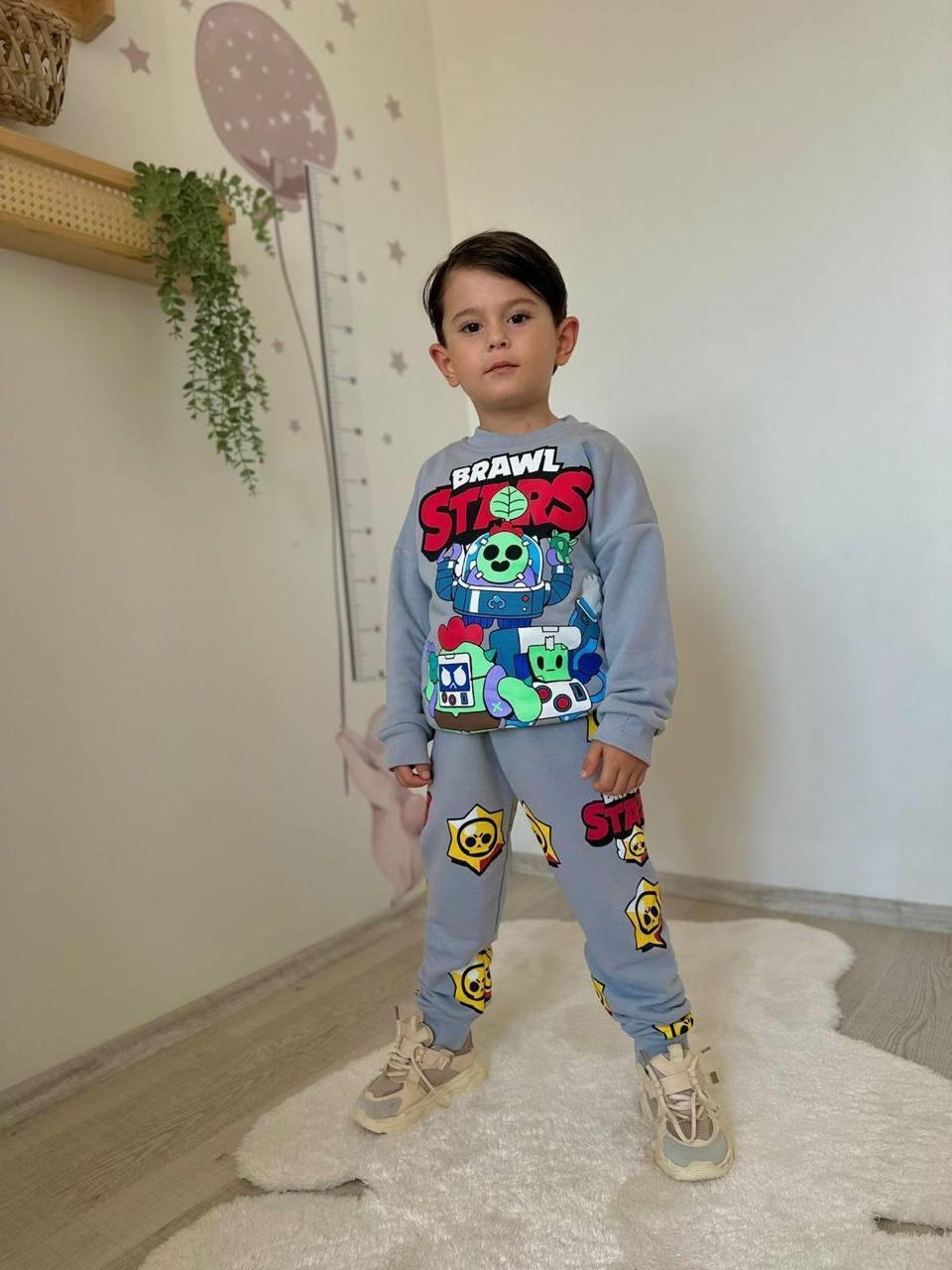 2857 Brwl Strs Baskılı Yazılı Erkek Çocuk Şardonsuz 3 İplik Takım-GRİ