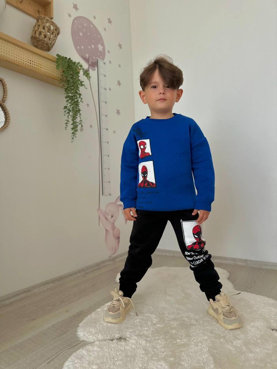2908 Örümcek Adam Baskılı Erkek Çocuk Üç İplik Şardonlu Takım-SAKS MAVİ