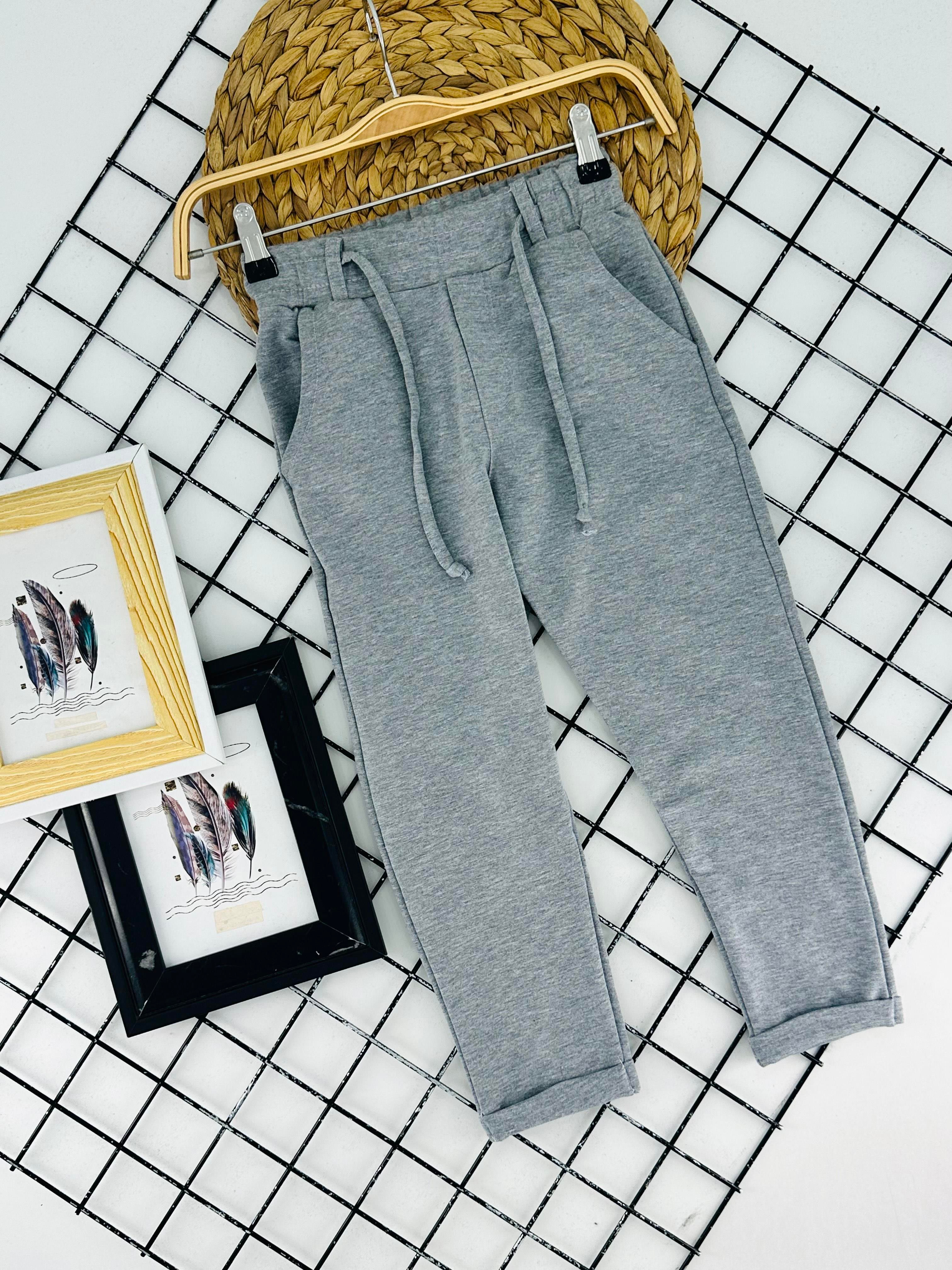 3033-1 Jogger Kumaş Duble Paça Erkek Çocuk Pantolon-GRİ