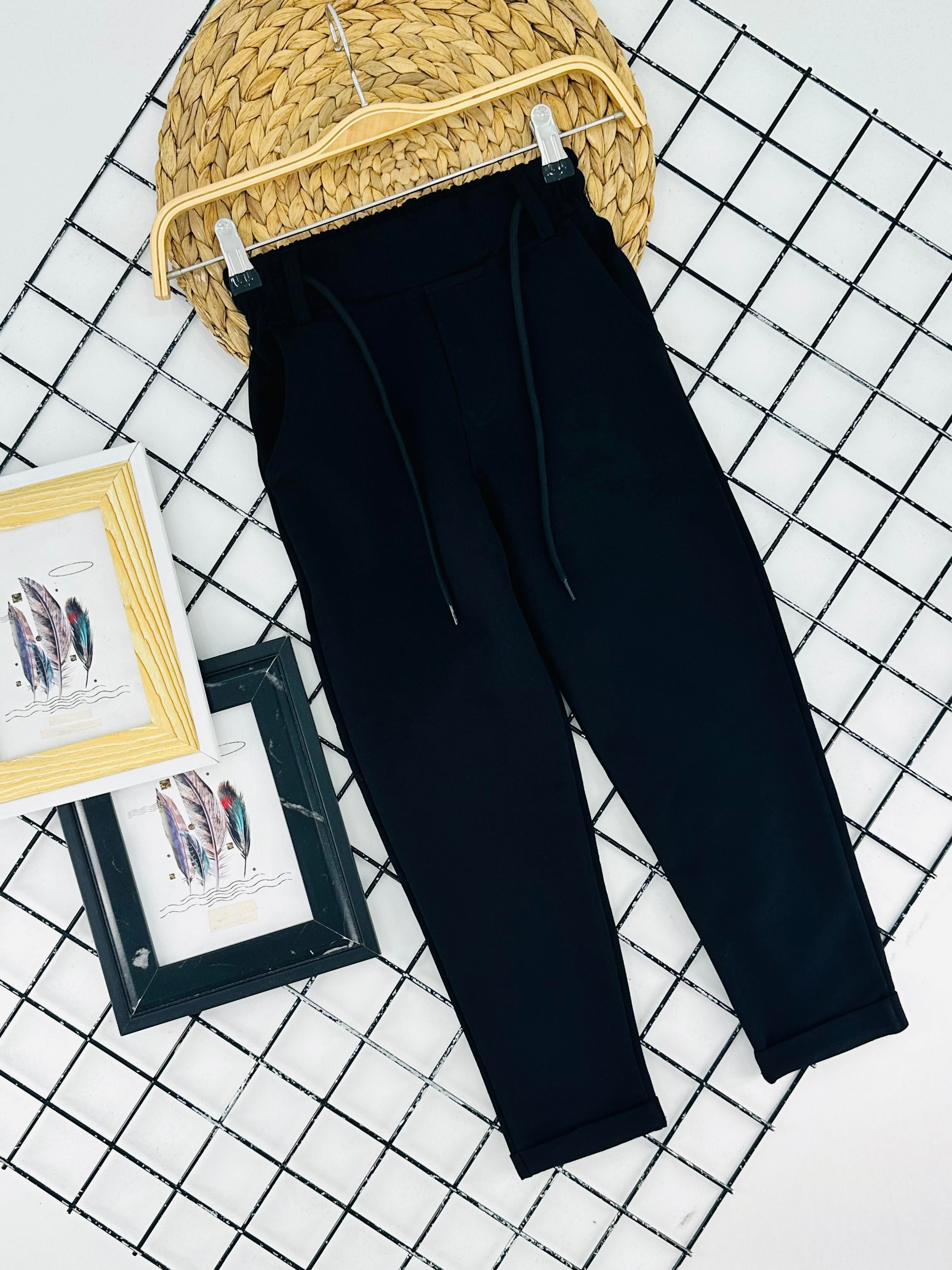 3033-1 Jogger Kumaş Duble Paça Erkek Çocuk Pantolon-SİYAH