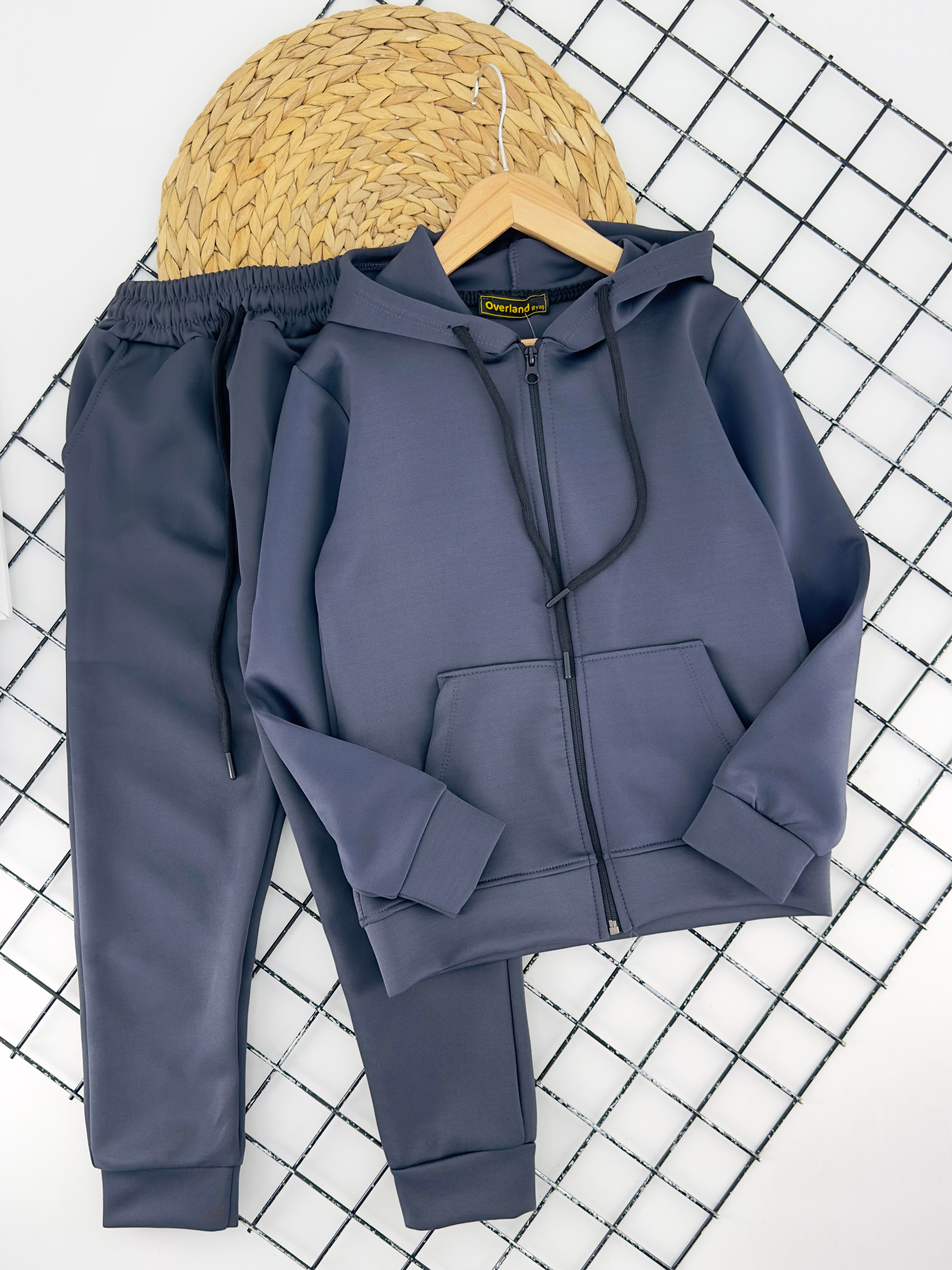 310-4 Fermuarlı Sade Dalgıç Kumaş Unısex Eşofman Takım-FÜME