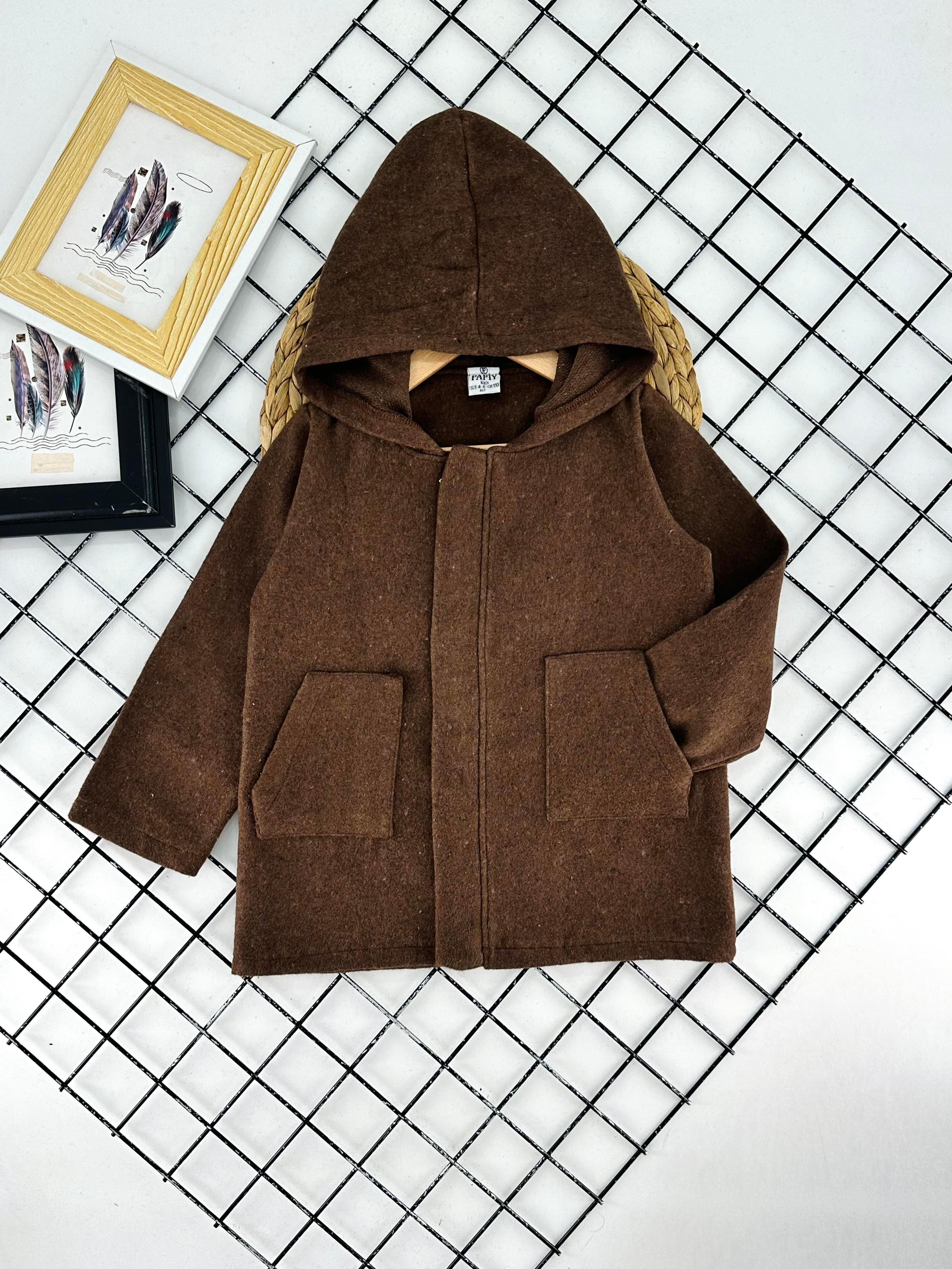 3253 Yan Cep Detaylı Fermuarlı Erkek Çocuk Kaşe Kaban-KAHVE