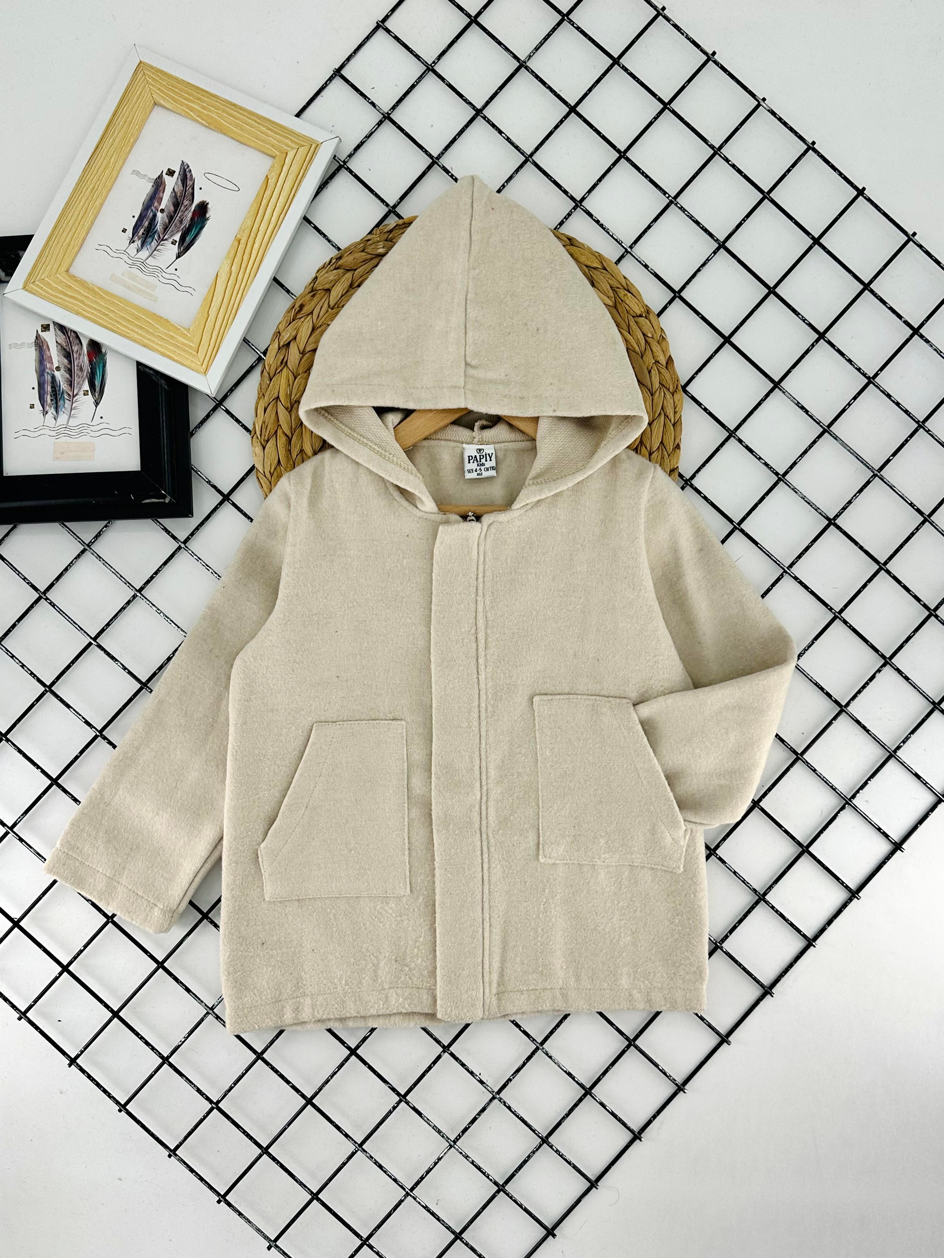 3253 Yan Cep Detaylı Fermuarlı Erkek Çocuk Kaşe Kaban-KREM