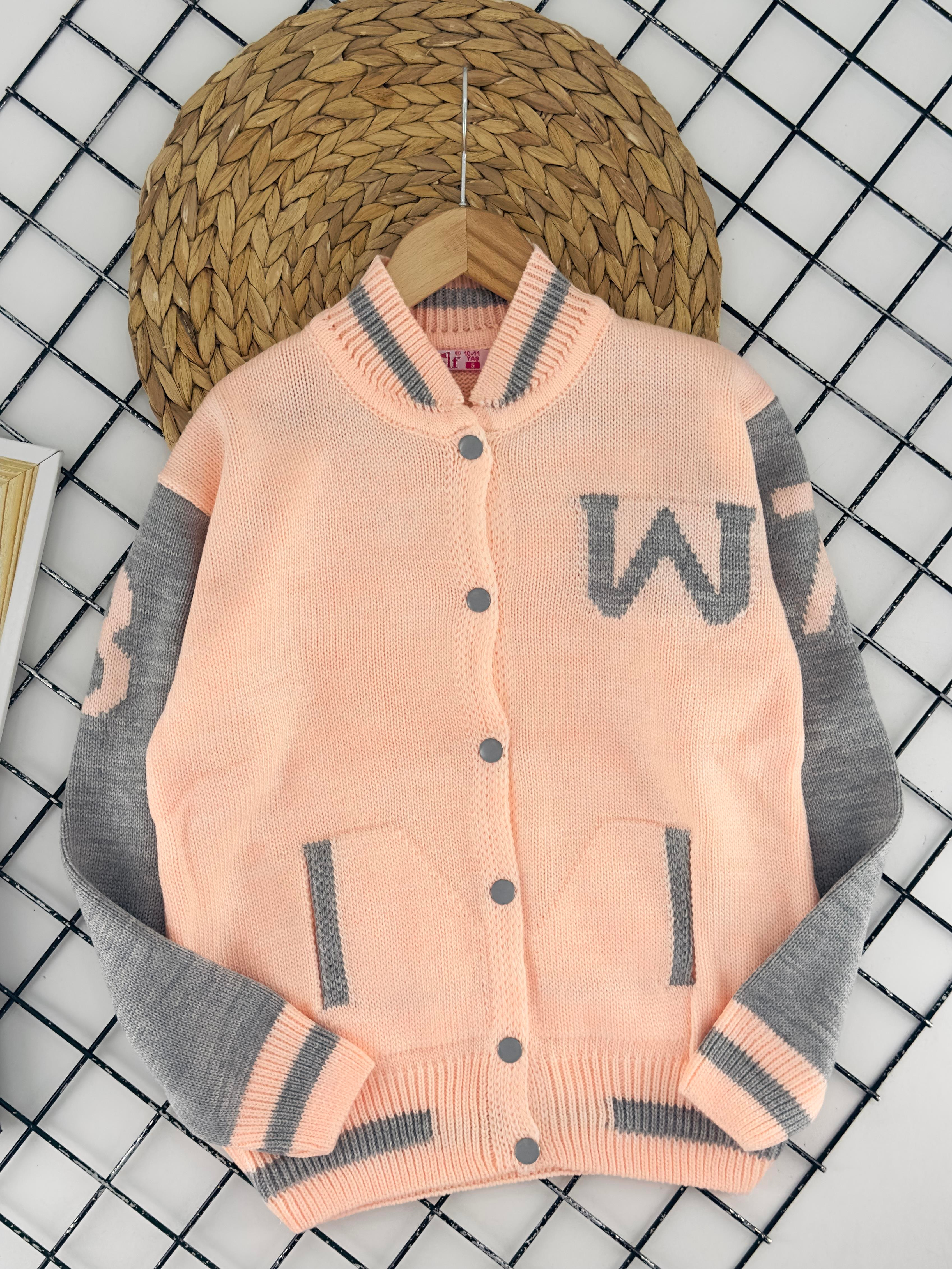 370 W Nakışlı Triko Kolej Kız Çocuk Hırka-SOMON