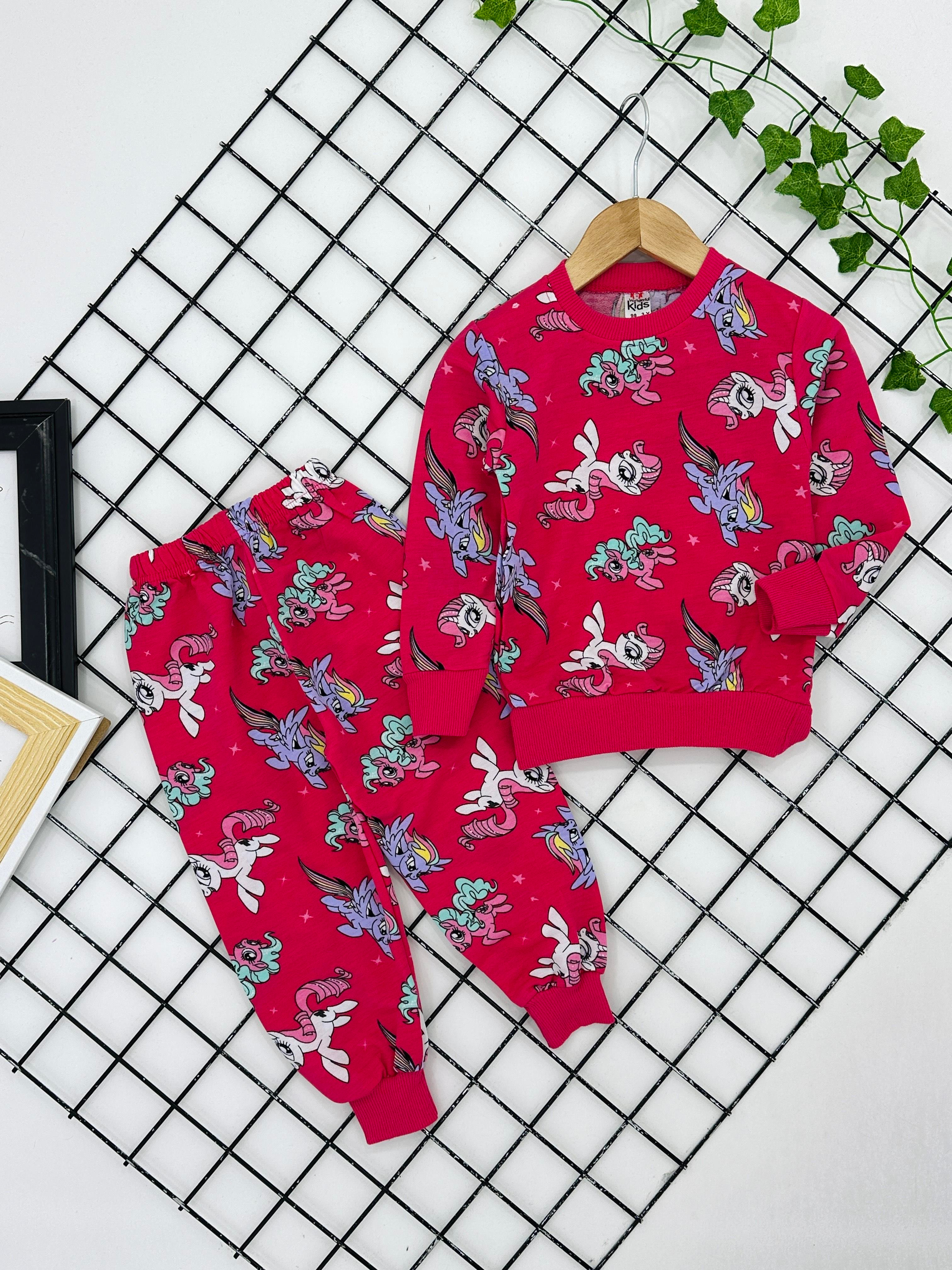 3818 Pony Baskılı Kız Pijama Takımı-FUŞYA