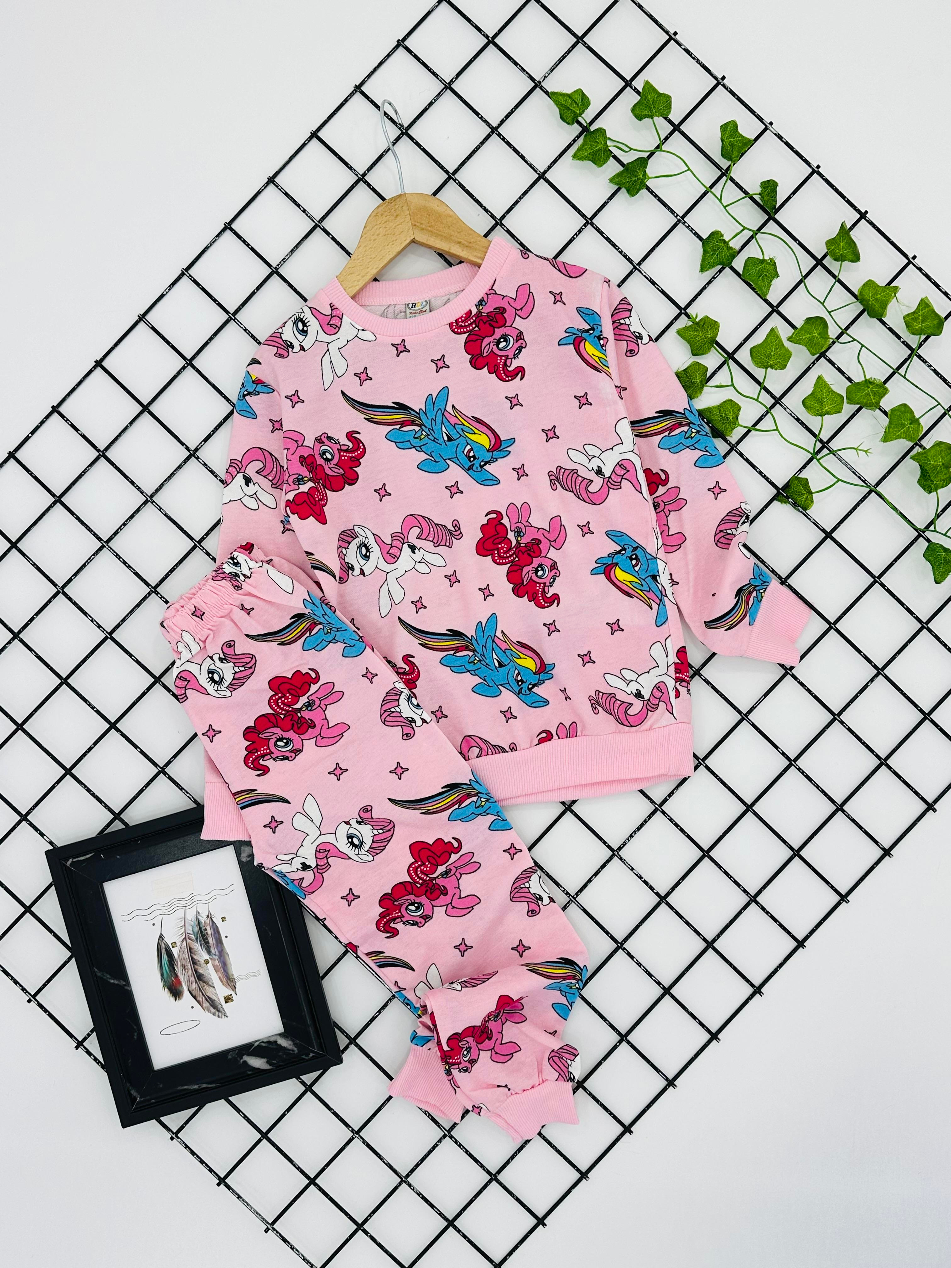 3818 Pony Baskılı Kız Pijama Takımı-PEMBE