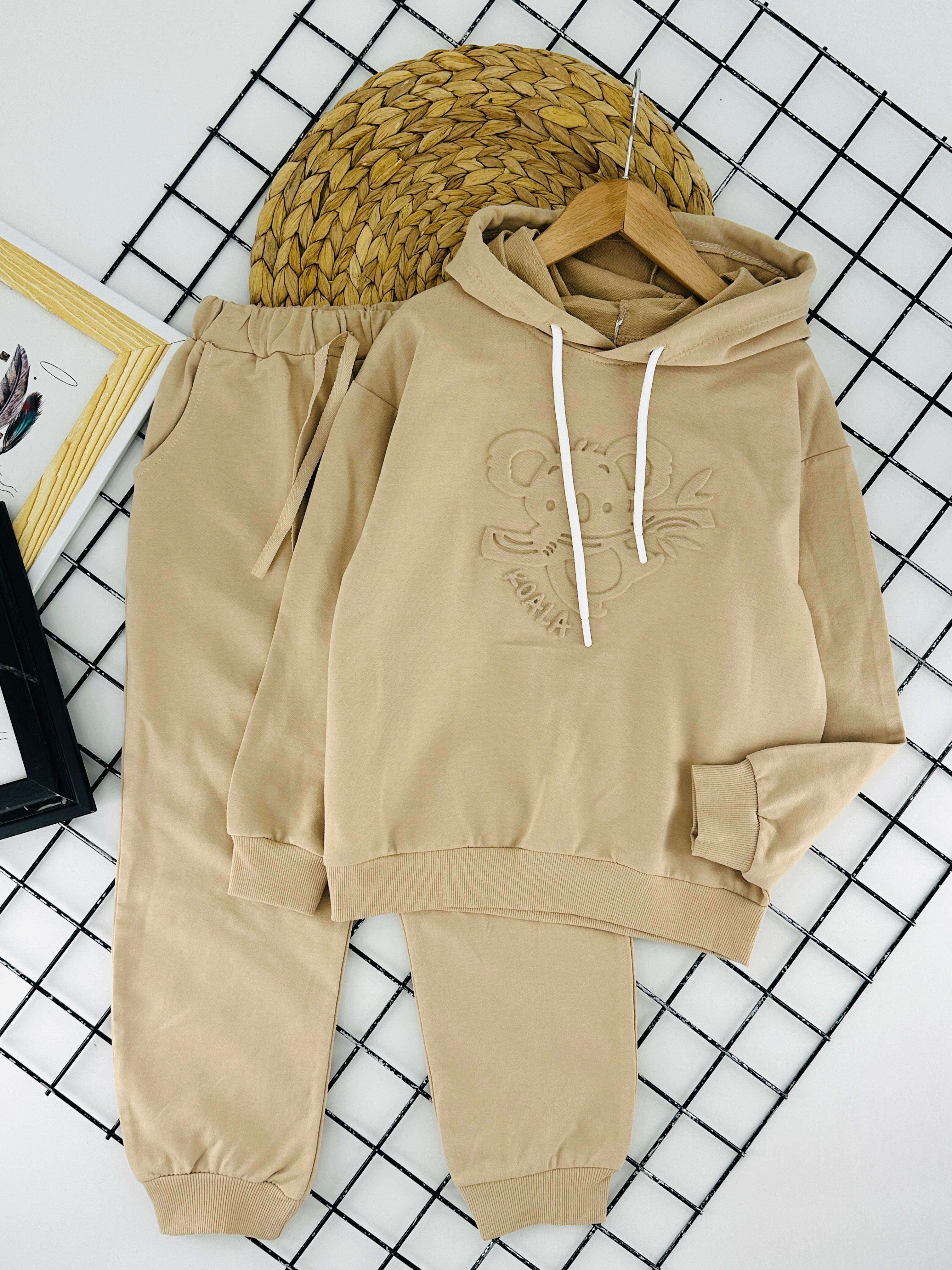 405 Koola Baskılı Yazılı Kapşonlu Erkek Çocuk İki İplik Takım-BEJ