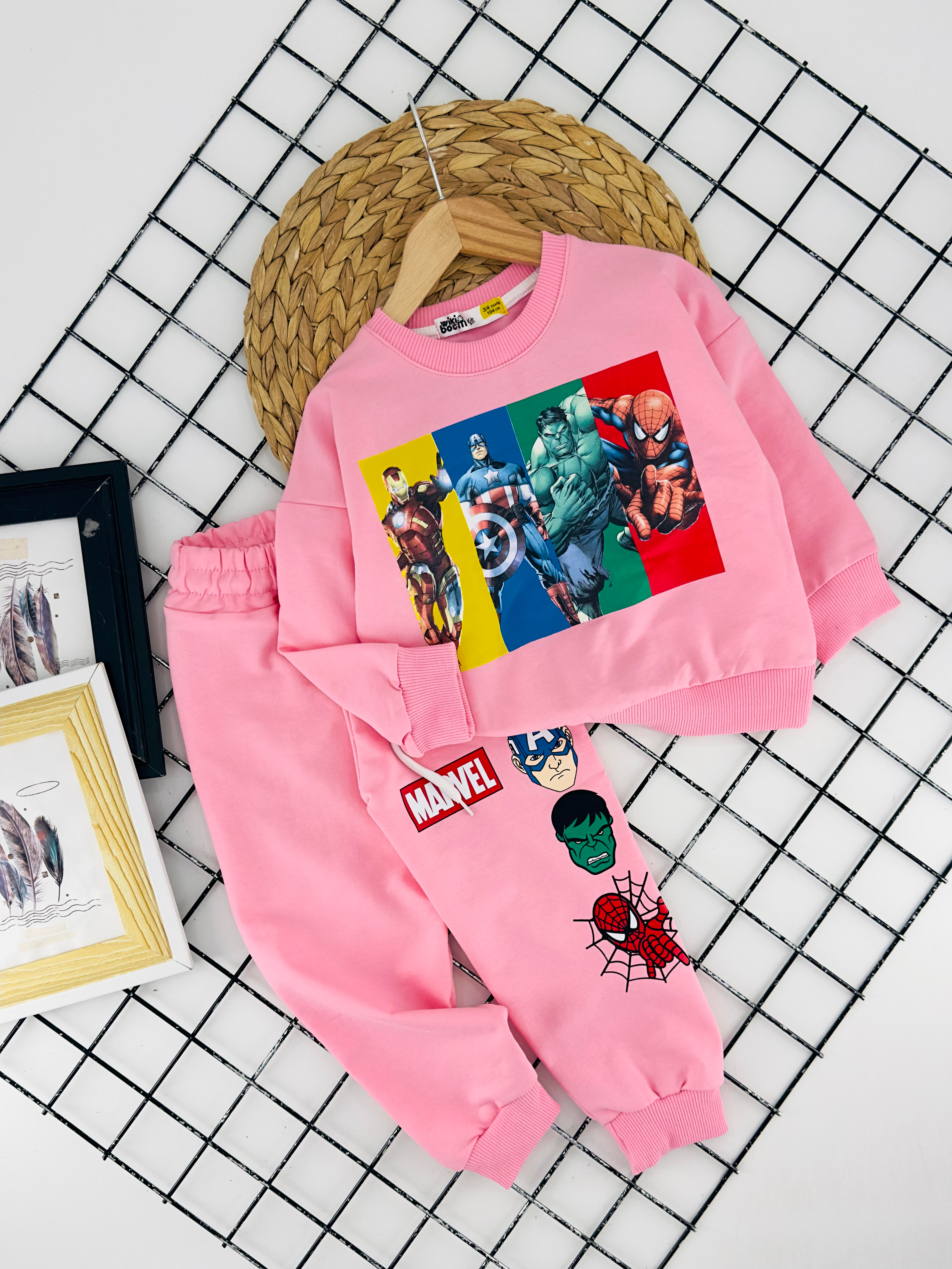 4059 Mrvl Baskılı İki İplik Penye Kız Çocuk Takım-PEMBE