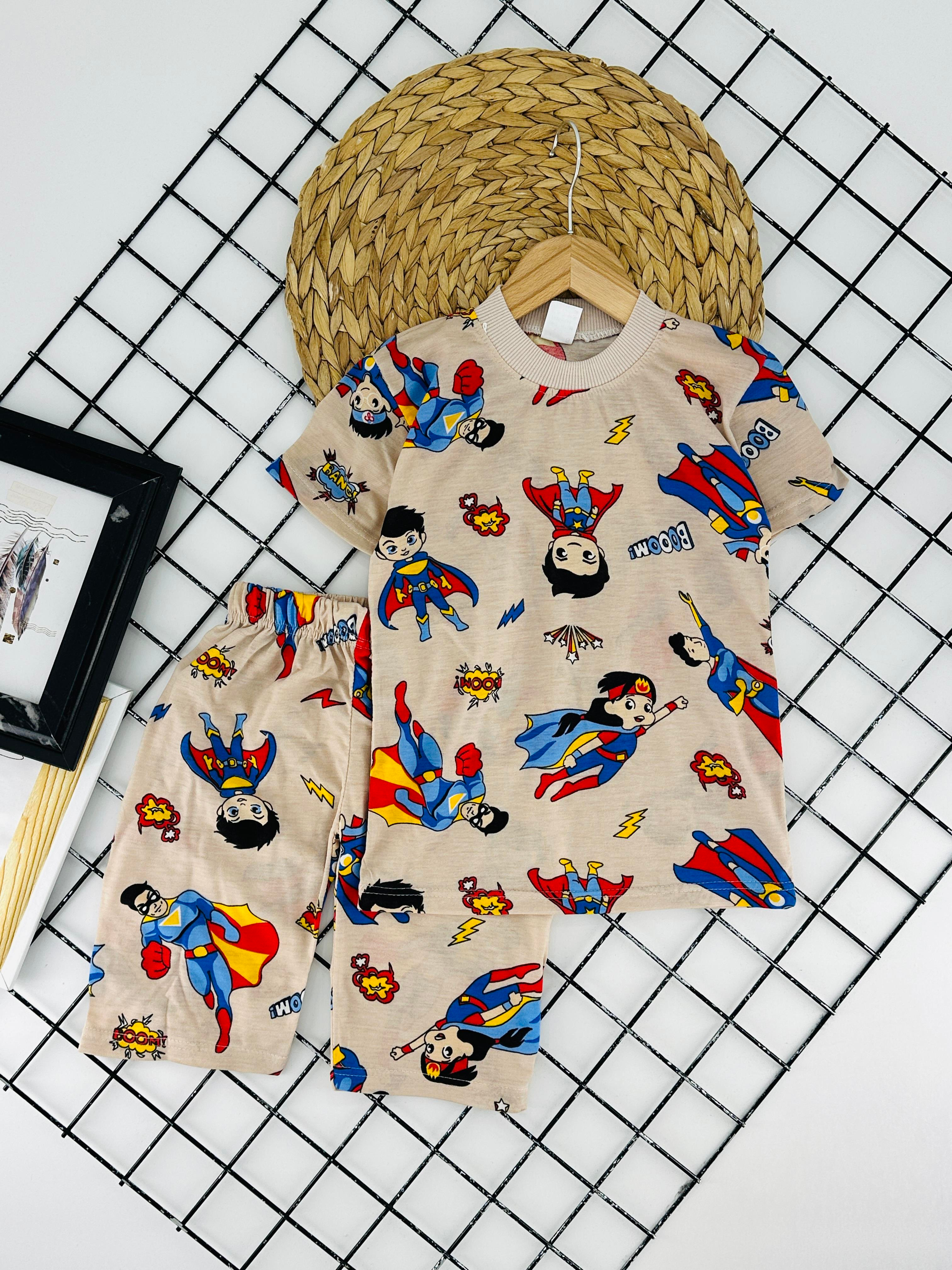 4090-5 Sprmn Boom Baskılı Erkek Çocuk Penye Şortlu Takım-BEJ