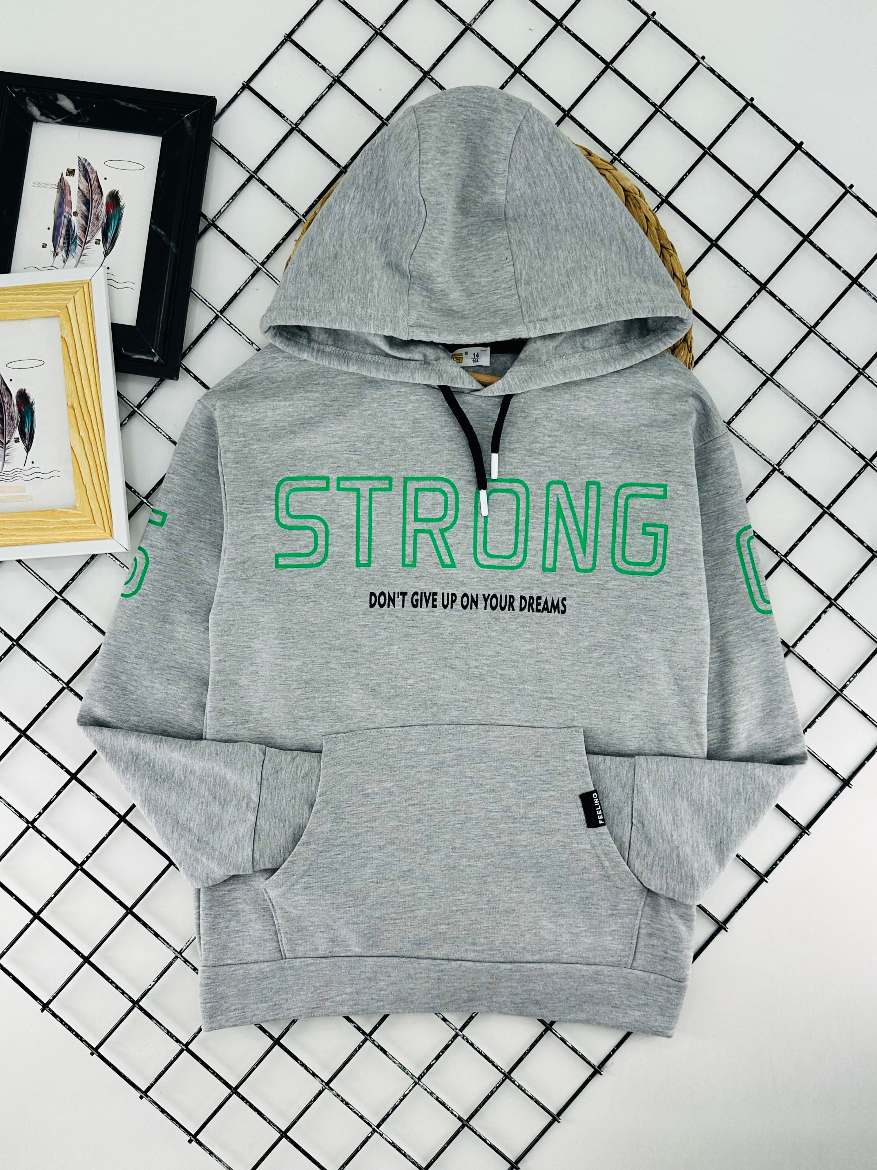 424511 Strong Yazılı Kanguru Cepli Erkek Çocuk İki İp Sweat-GRİ